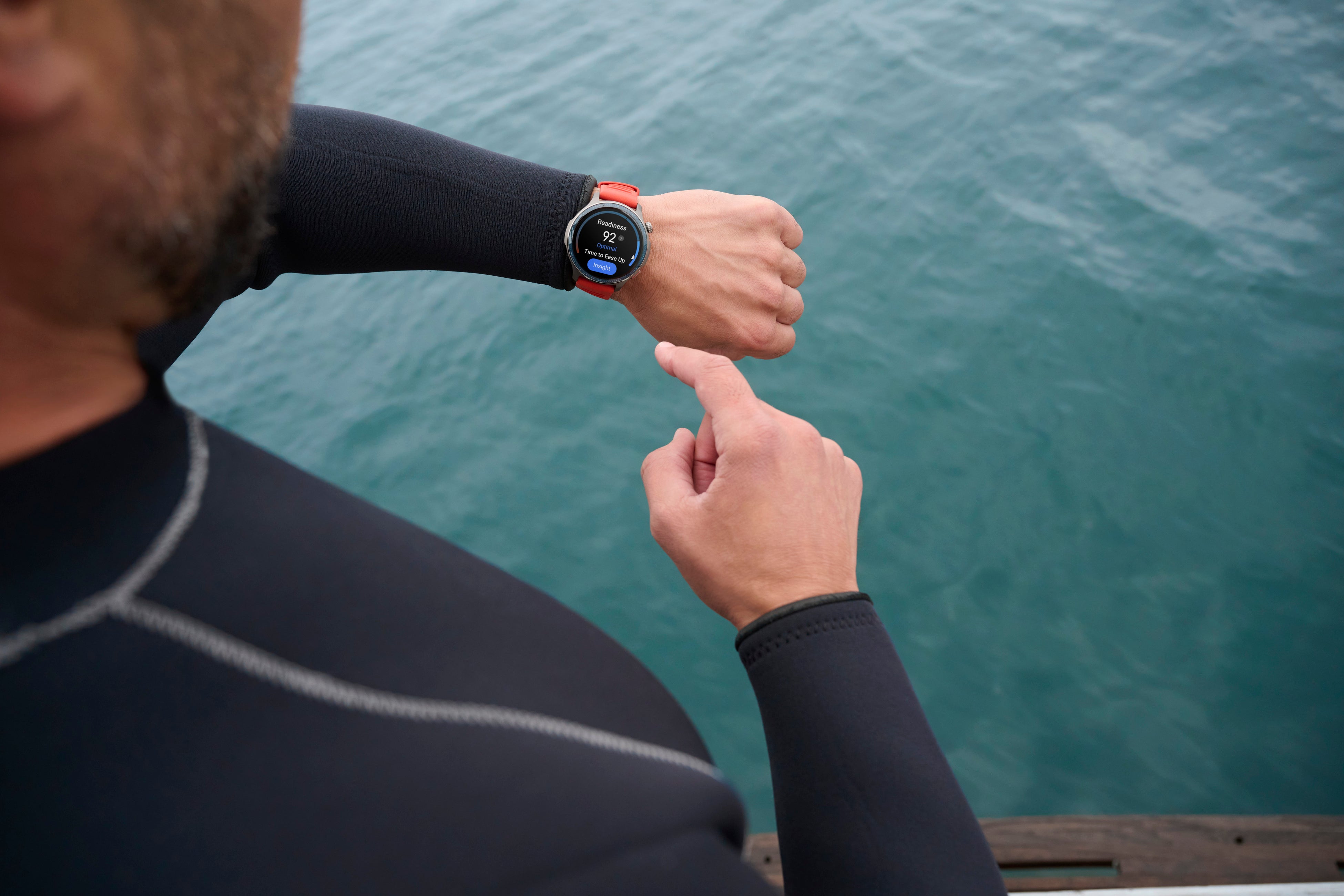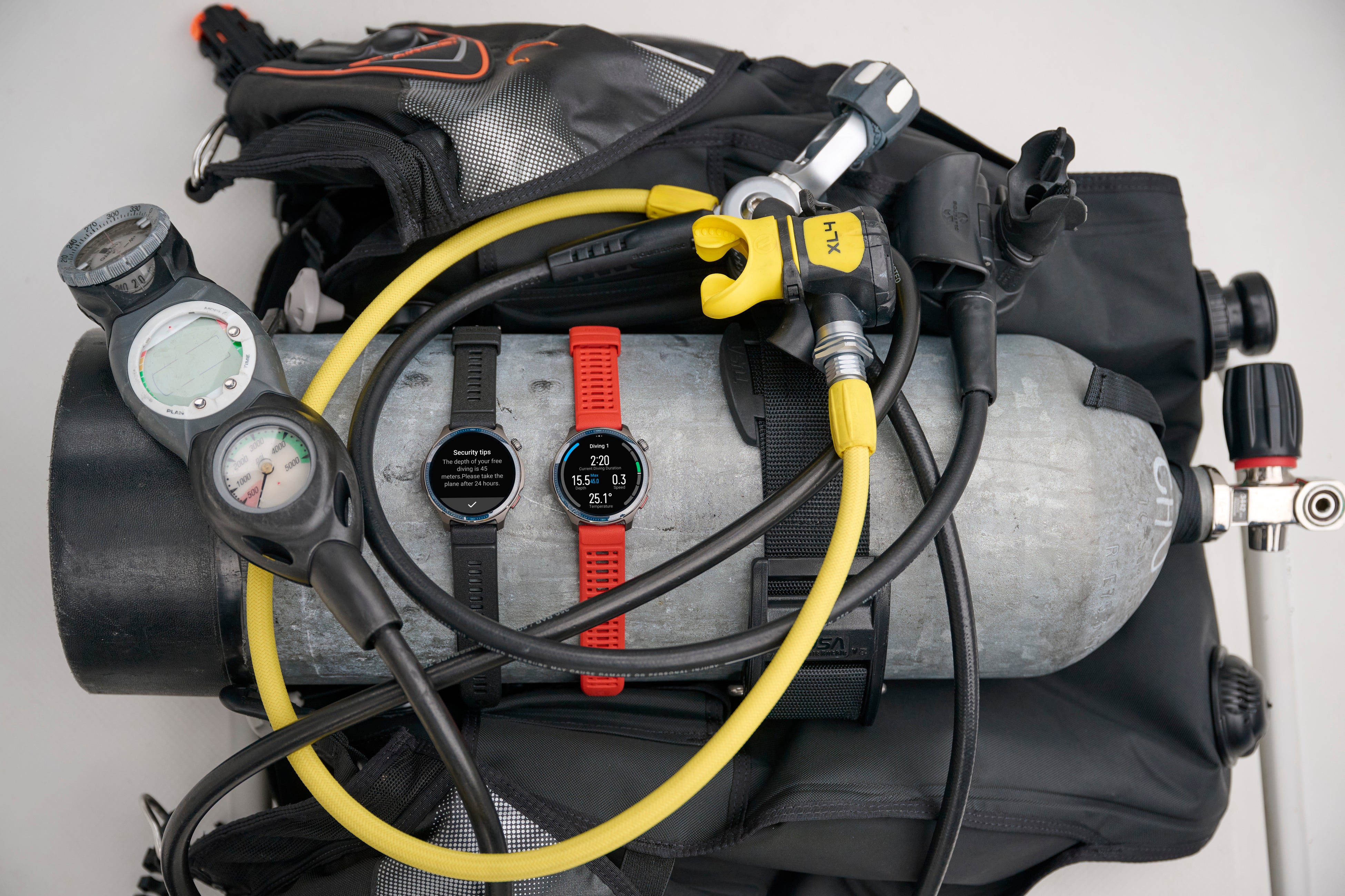 ・ダイビングモード搭載:最大水深45mまでのダイビングにも対応(アップデートで対応)