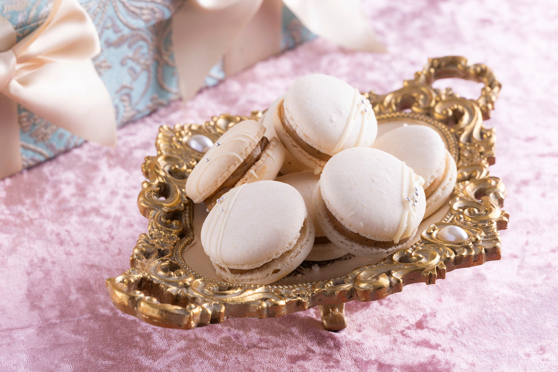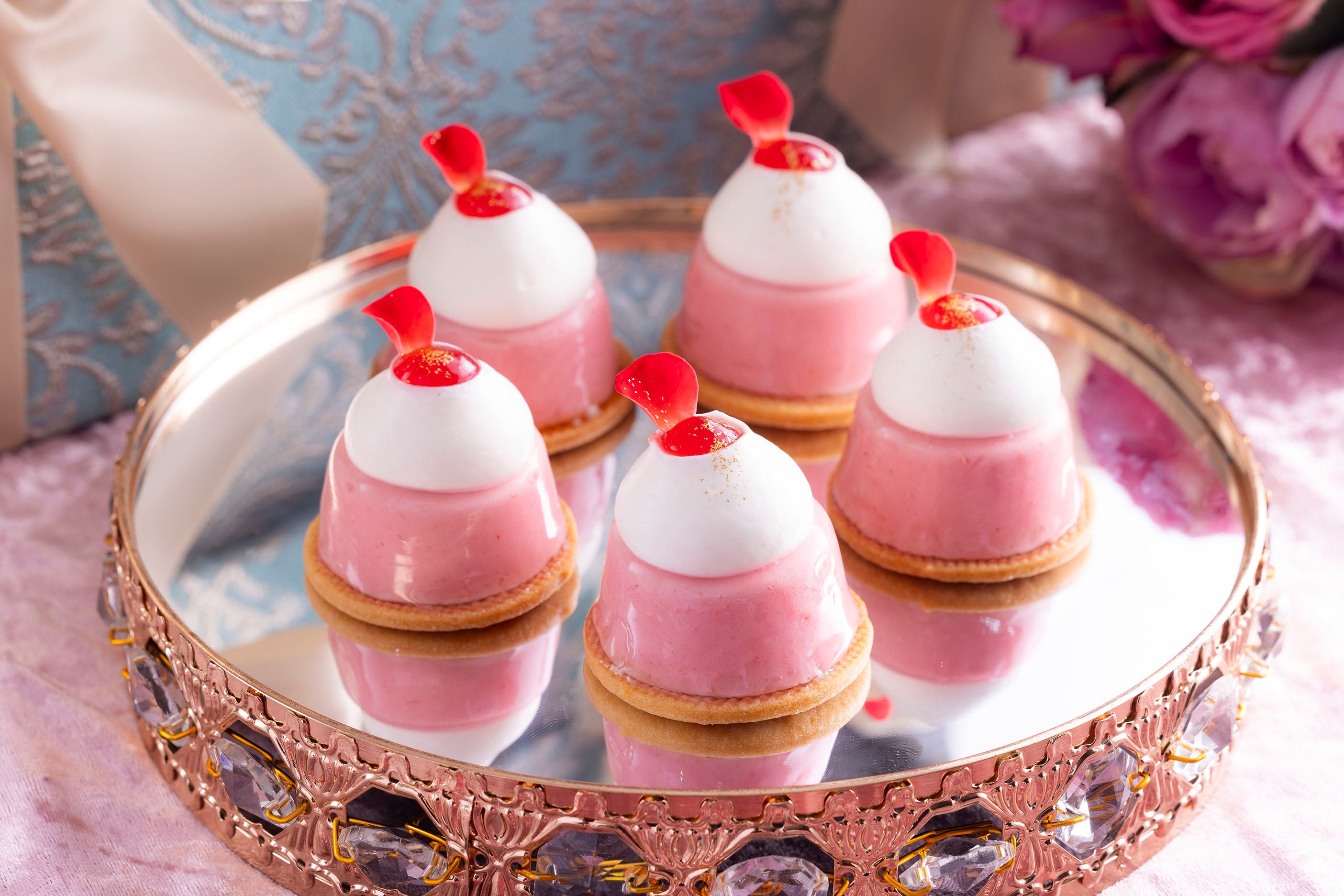 ライブステーションでは、マリー・アントワネットが生まれたオーストリアの伝統菓子「カーディナルシュニッテン」をご用意。メレンゲ生地とスポンジ生地を交互に重ねて焼き上げた、サクサクとふわふわの食感が魅力の生地に、たっぷりのラズベリークリームを絞り、お客様の目の前で華やかに切り分けてご提供いたします。その他にも、貴婦人の帽子をイメージし、ラズベリーの爽やかな酸味とキャラメルのまろやかな甘味が絶妙に調和した「ラズベリー・シャポー」や、ホワイトチョコレートのマカロンにアールグレイティーの香りを閉じ込め、まるでマリー・アントワネットが身に着けていた宝石のような「マカロン・ド・ビジュー」など、一口サイズのスイーツも充実したラインアップでお届けいたします。