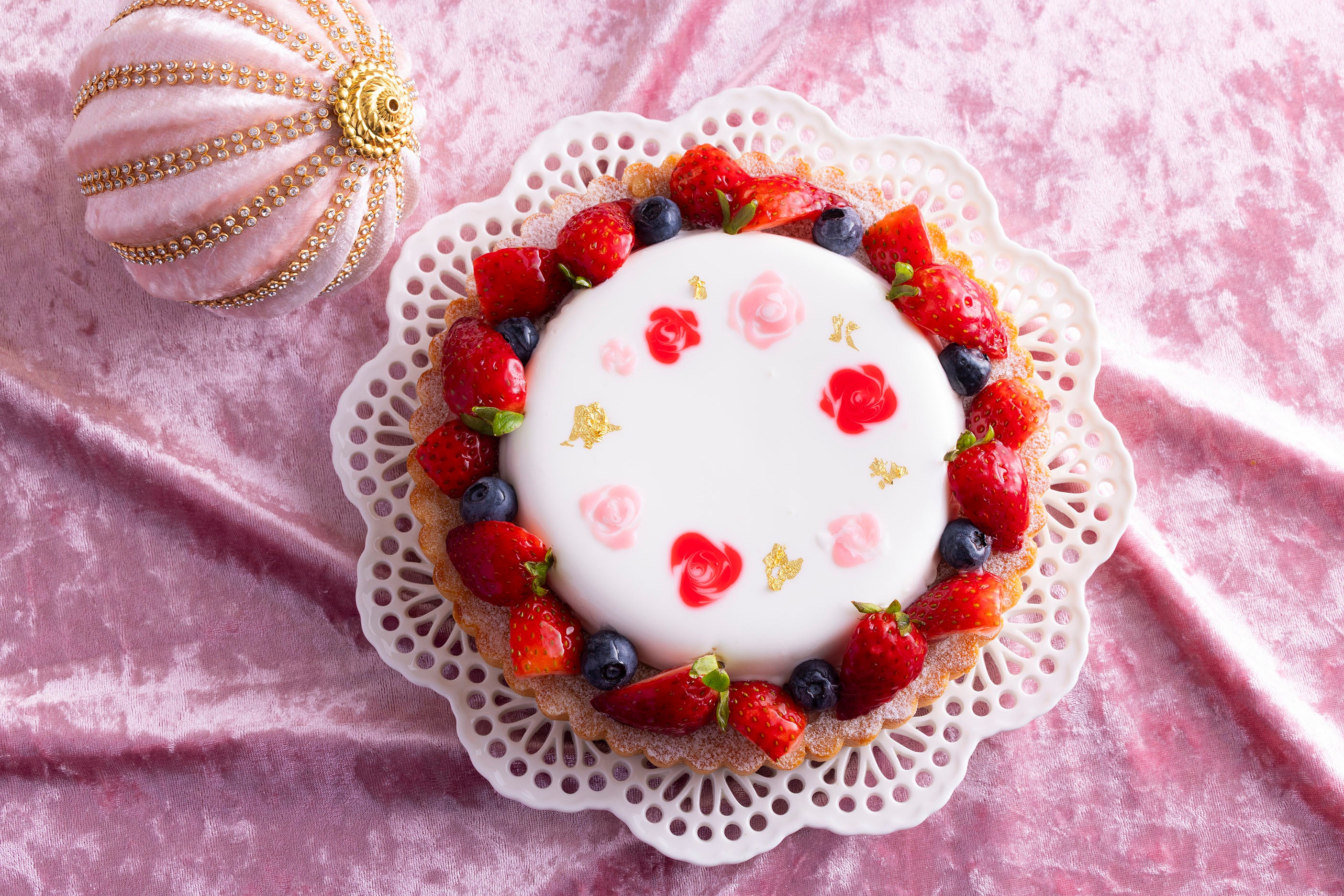 軽やかなスポンジにオレンジリキュールを染み込ませ、まるでマリー・アントワネットのドレスのように華やかなショートケーキ「フレーズ・エ・シャルム」。フレッシュ苺をサンドし、生クリームにも苺を使った気品あふれる一品です。「クチュール・ブランシュ」は金柑とカルダモンのコンフィチュールをジャスミンティーのムースで包み込み、レースのような繊細なデコレーションを施しました。フランスの伝統菓子“ビスキュイ・サヴォワ”をクグロフ型で焼き上げた「マリーの愛したビスキュイ・クグロフ」は、ふわふわとした食感にビターオレンジがアクセントを添える、シンプルながらも上品な味わいです。また、「アップル・ド・ノエル」はマリーが愛したヴェルサイユ宮殿の特別な果樹園で育まれたりんごより着想を得た、ほんのりシナモン香るしっとりとしたパウンドケーキです。さらに、ヴェルサイユ宮殿の庭園に咲く薔薇を思わせる華やかなデコレーションが目を引くストロベリームースを載せた「王妃の美しきタルト」や、雪が積もった木々をイメージし、クリームで美しく仕上げたクリスマスの伝統菓子“ブッシュ・ド・ノエル”「ヴェルサイユの雪化粧」など、マリー・アントワネットの世界観を彷彿とさせるスイーツがビュッフェ台を彩ります。