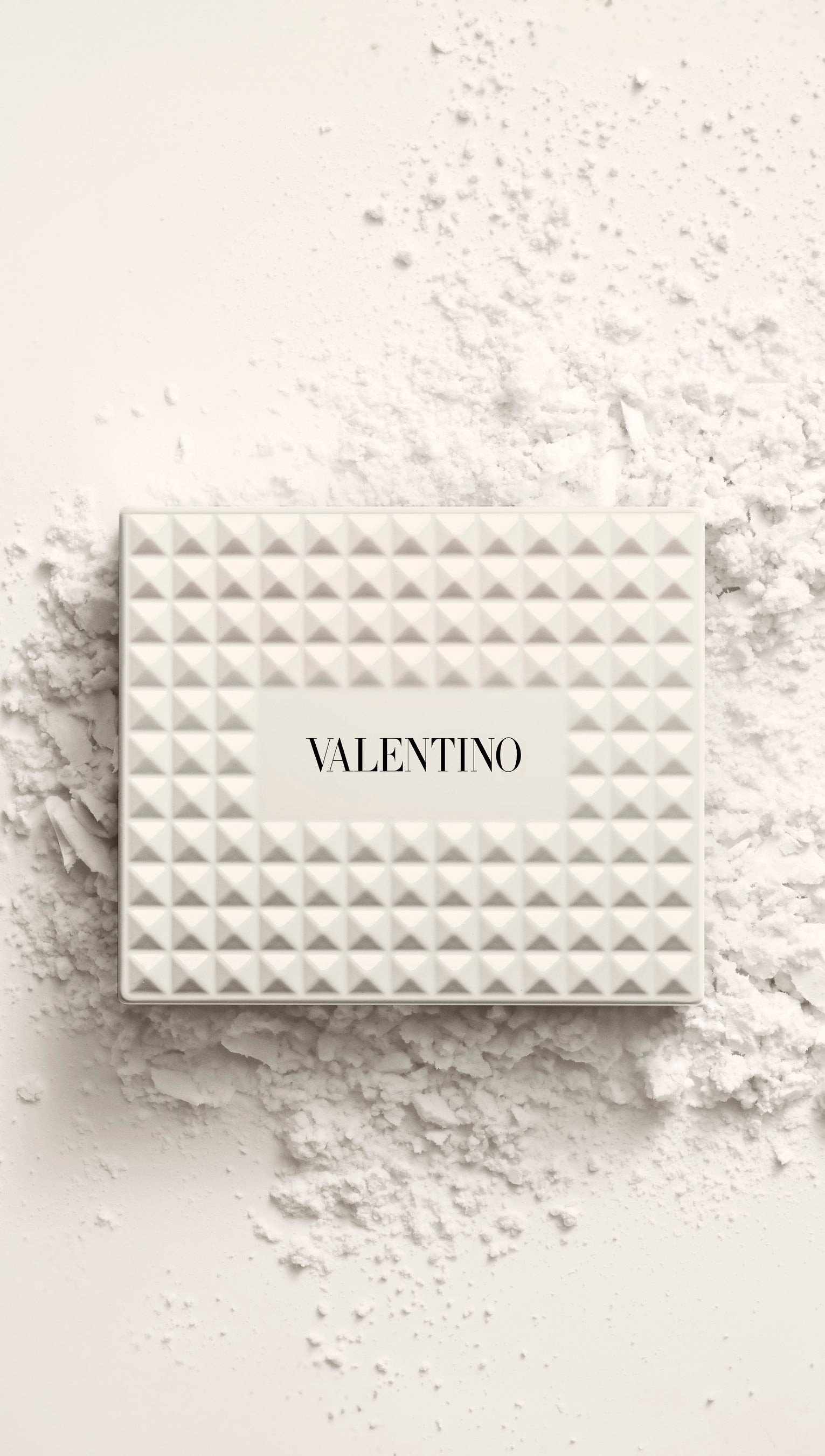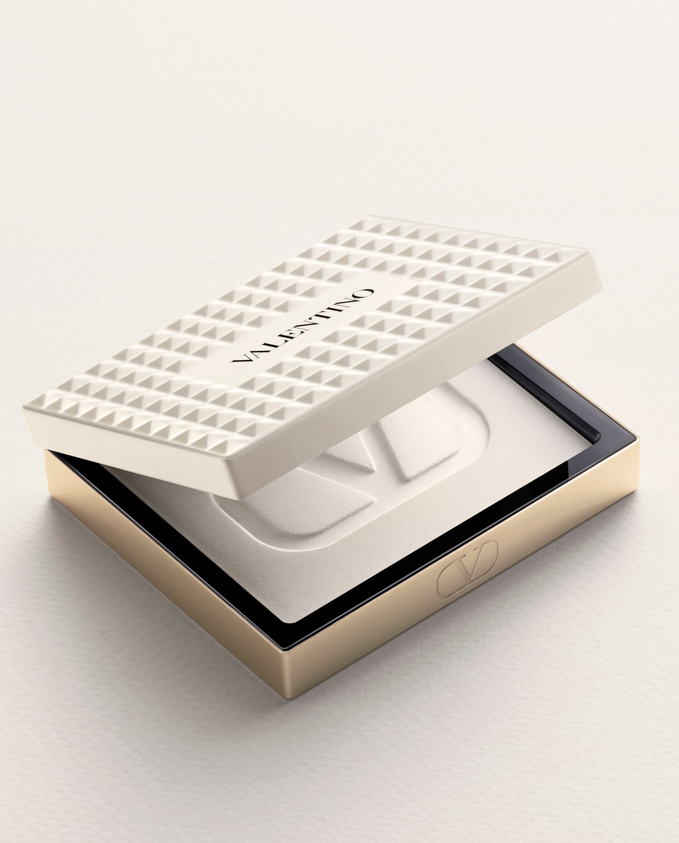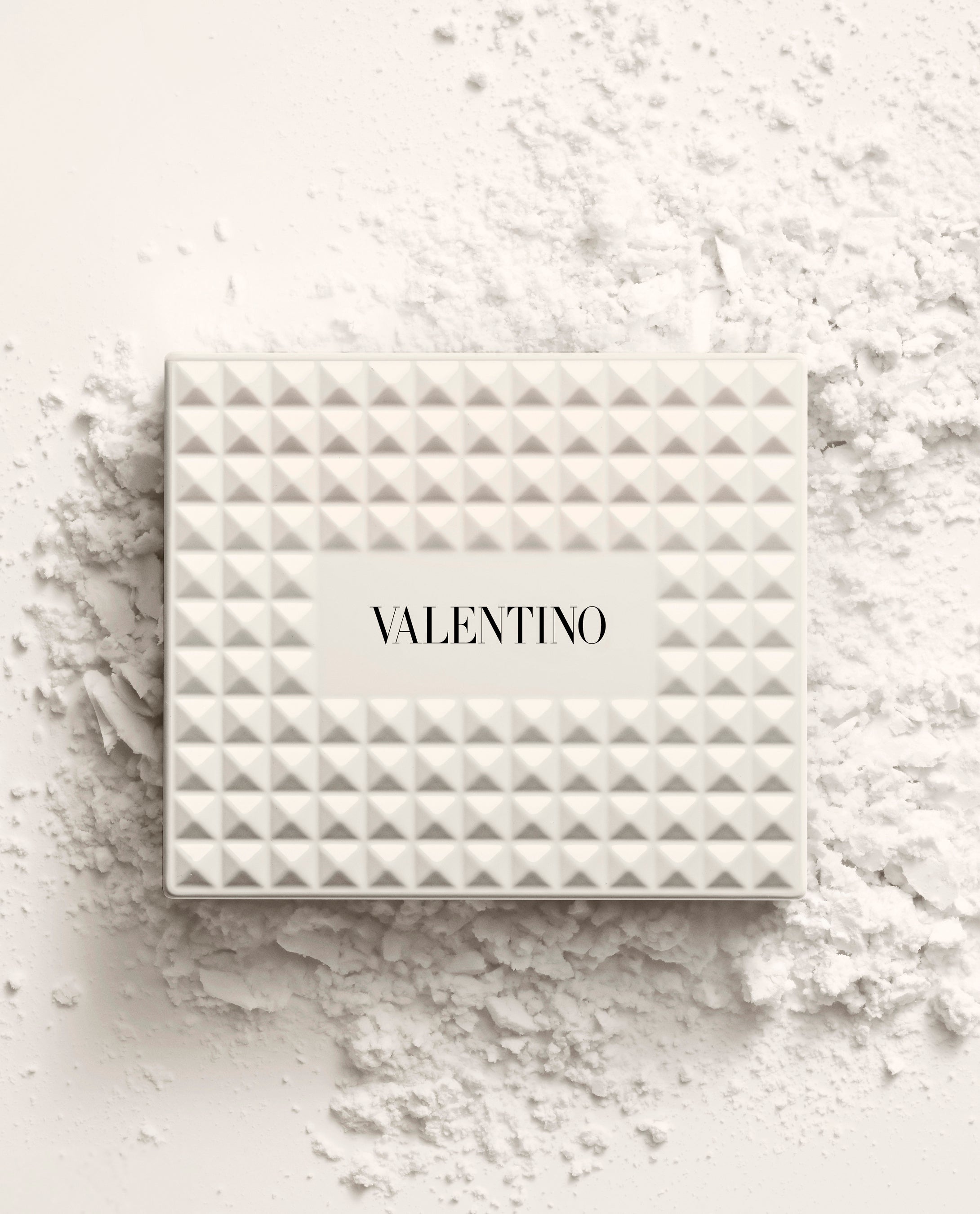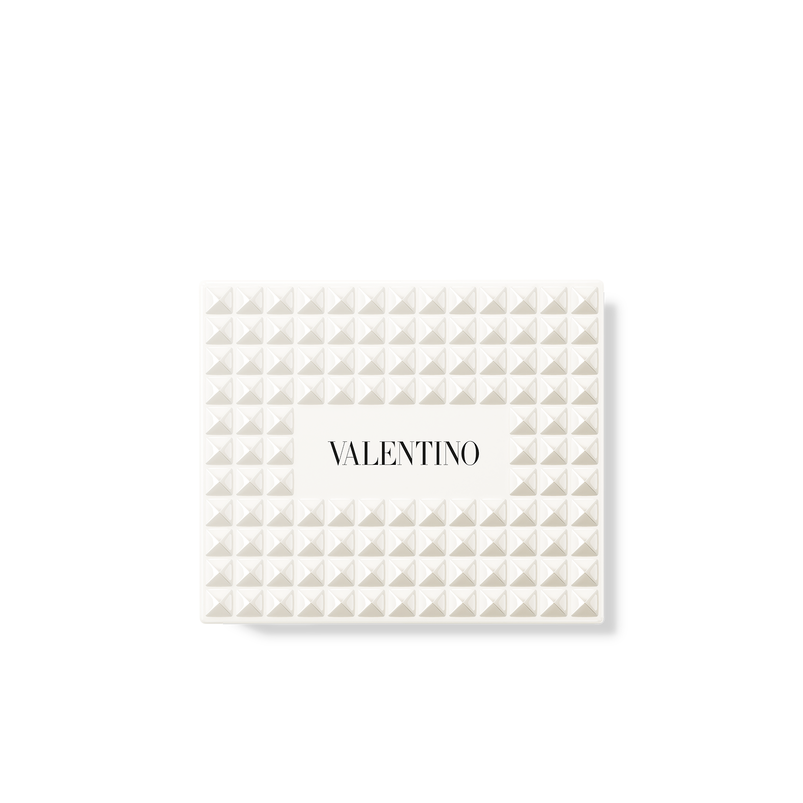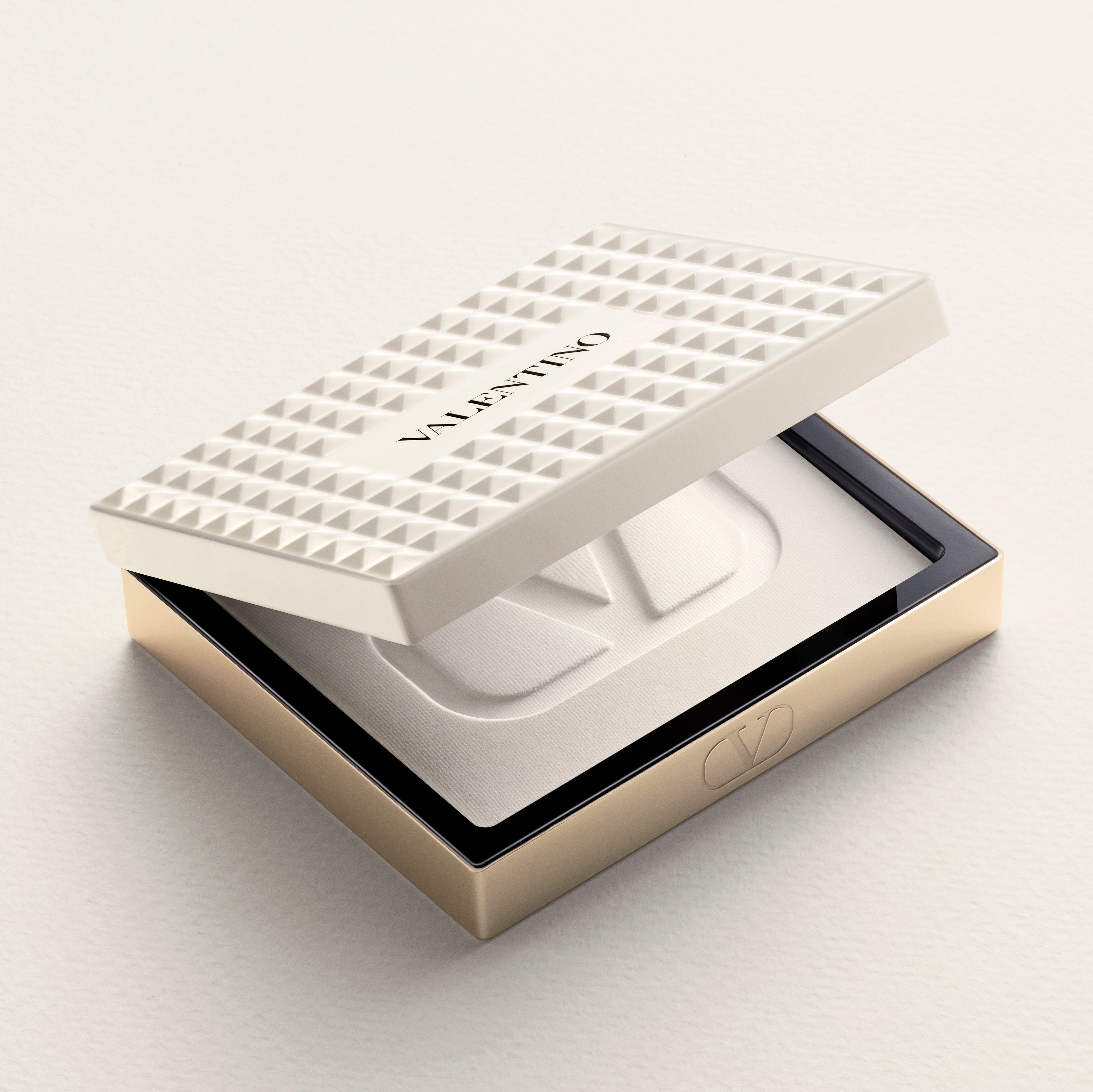 ヴァレンティノのバッグから着想を得た、122個のアイボリーホワイトのスタッズを全面にあしらった印象的なコンパクトは、単なるメイクアイテムではなく、コレクタブルなステートメントピースのようなデザインです。
