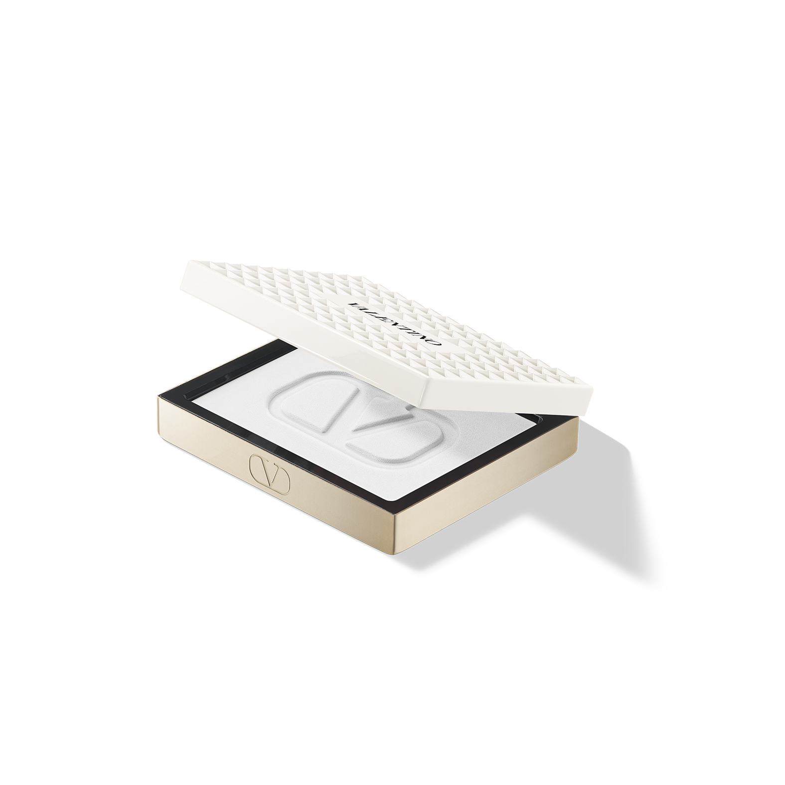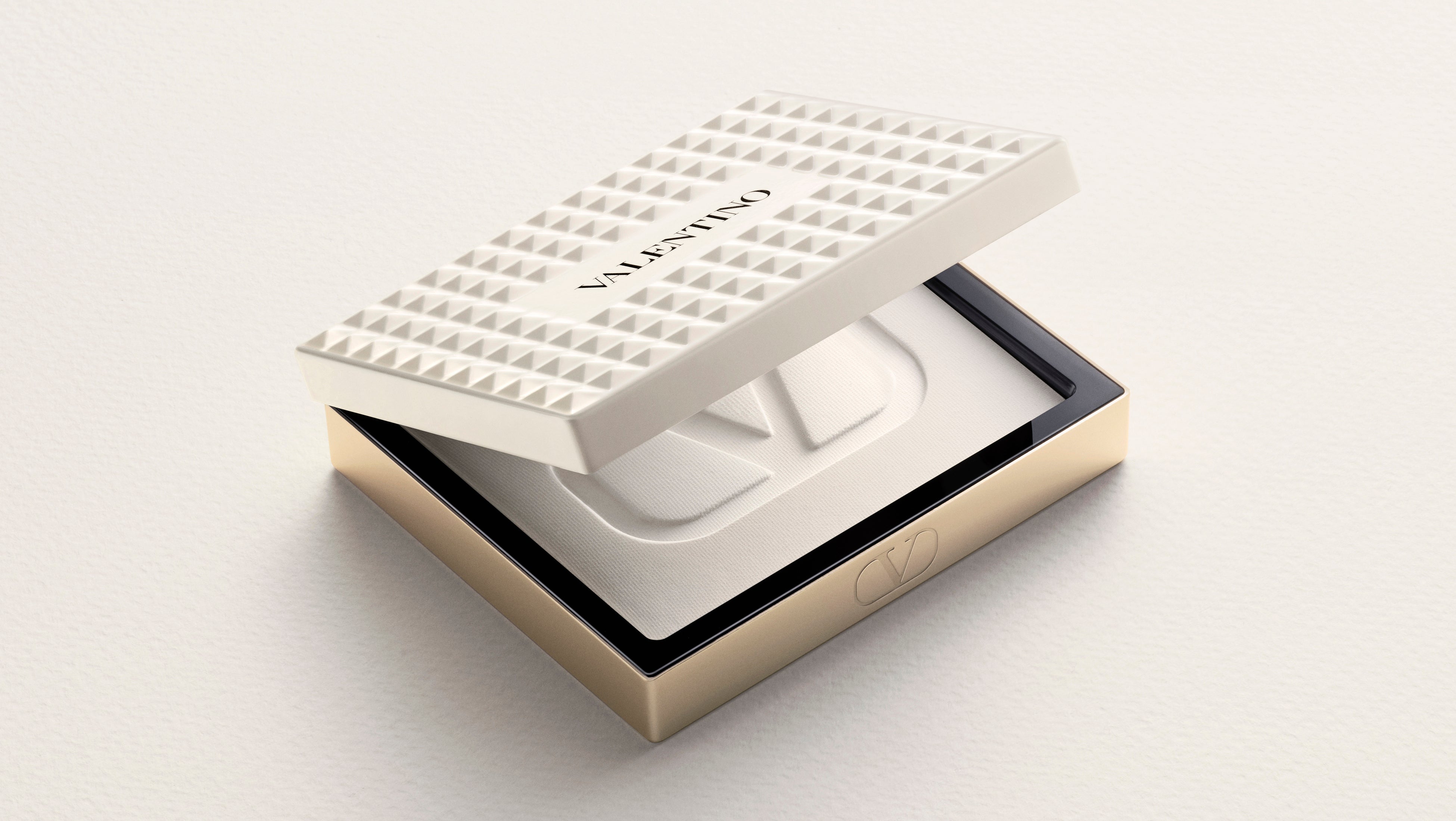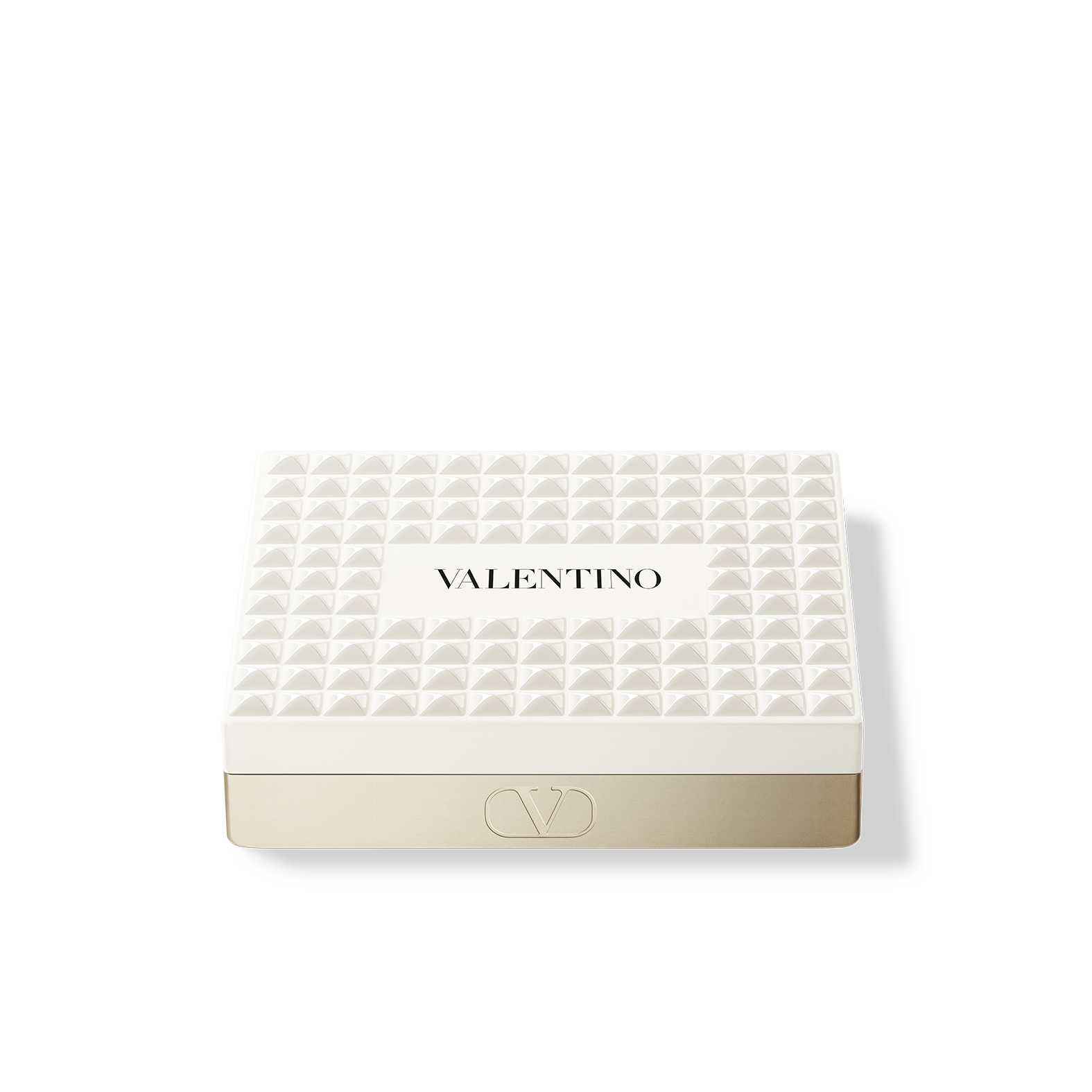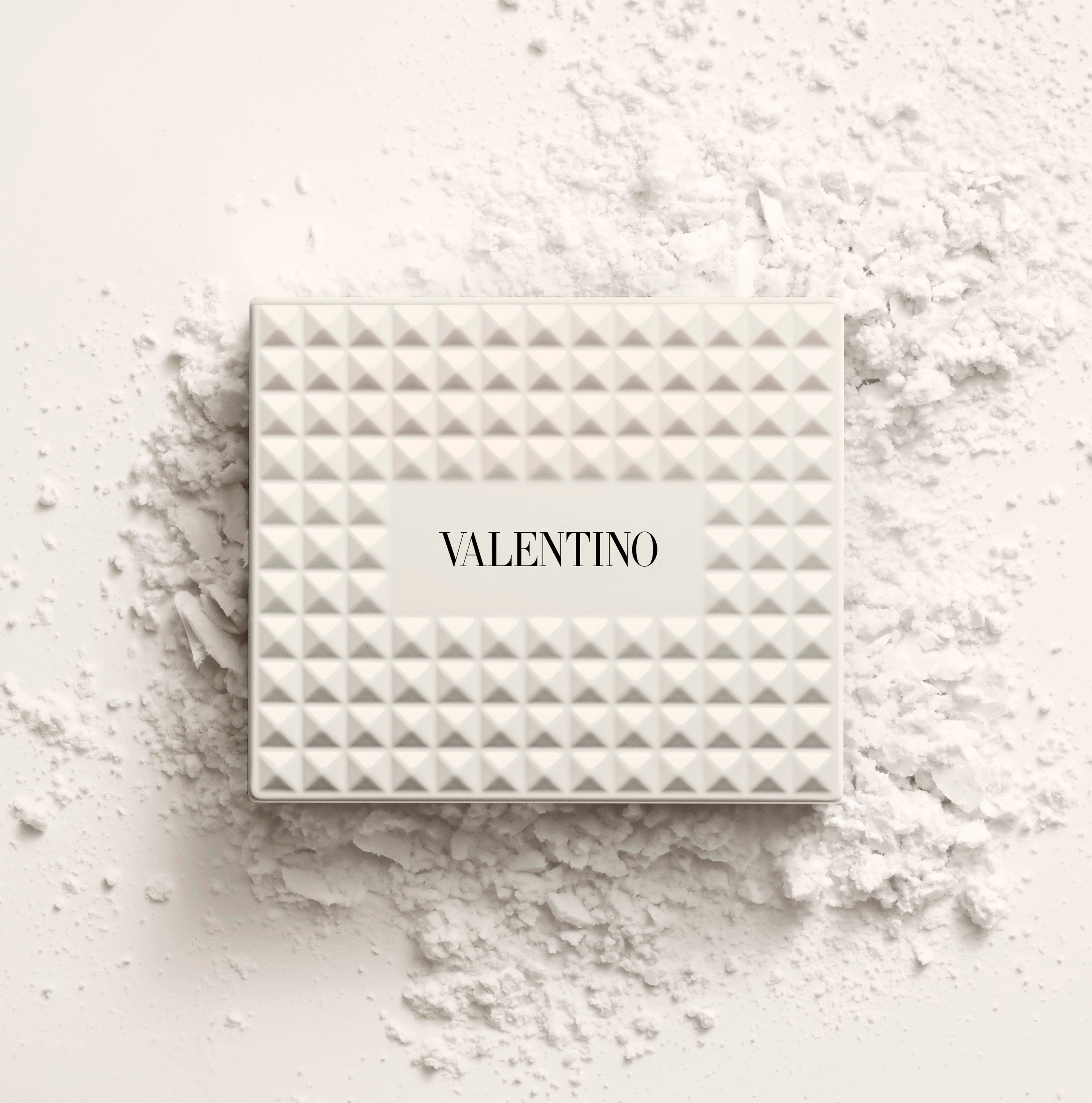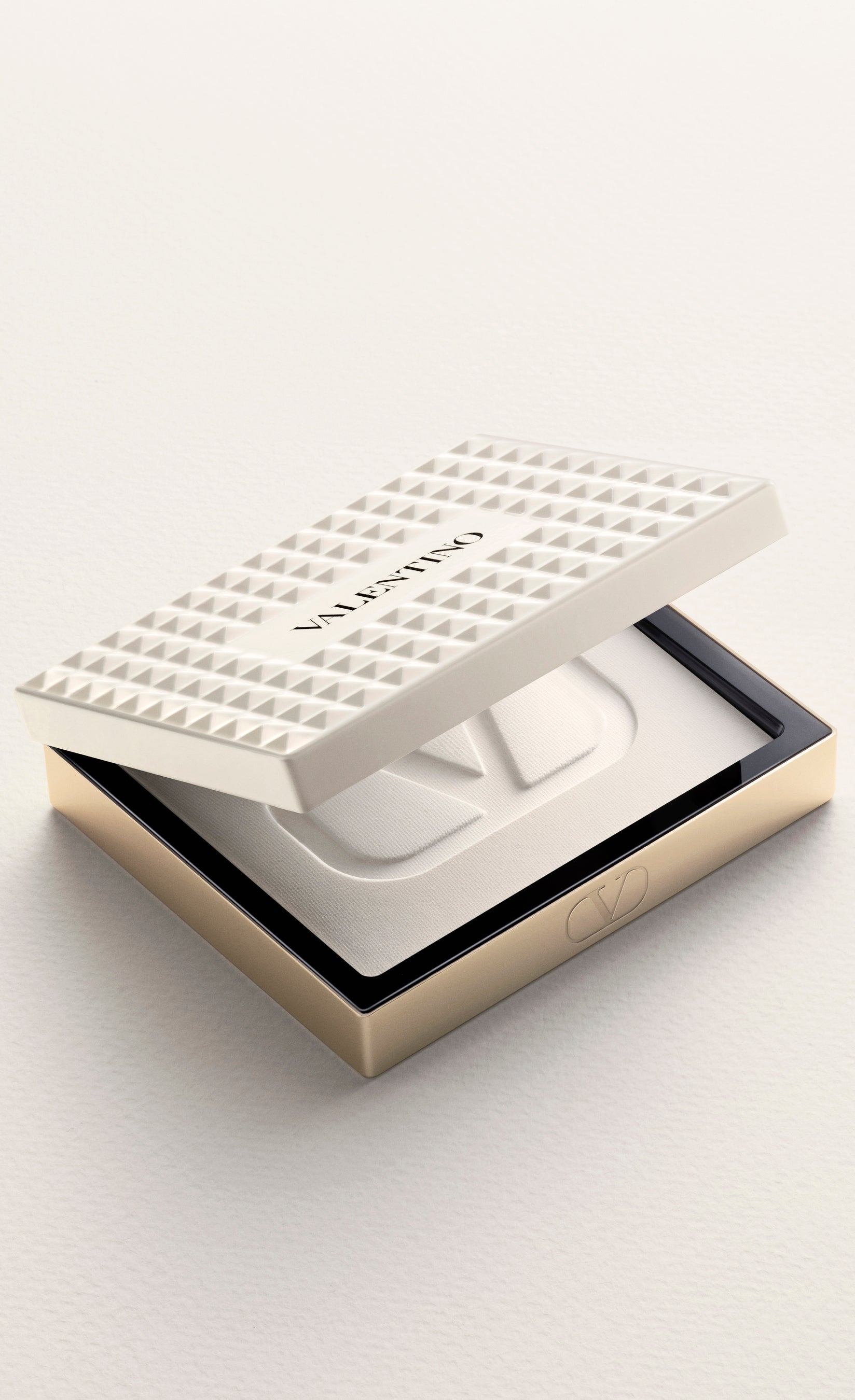 ヴァレンティノのバッグから着想を得た、122個のアイボリーホワイトのスタッズを全面にあしらった印象的なコンパクトは、単なるメイクアイテムではなく、コレクタブルなステートメントピースのようなデザインです。