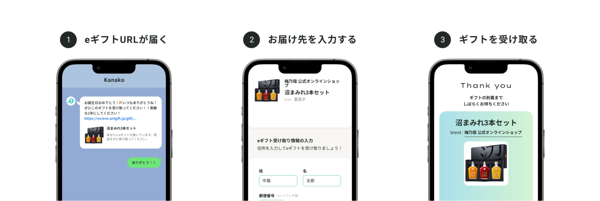 eギフトURLから住所を入力いただくだけで対象商品が届きます