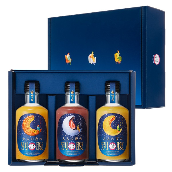 日本、欧米、アジア。世界中の果実スイーツのしあわせが、それぞれ1本に凝縮されたオドロキのリキュールの3本セットです。果実と日本酒とスイーツが織りなす「大人の夜の別腹」体験をぜひお試しください。