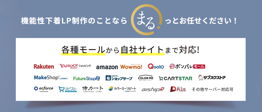 各種カート(ecforce/サブスクストア/リピスト…等)やモール(楽天市場/ヤフーショッピング/AMAZON…等)にファッションLP反映までご対応させていただくことが可能です。