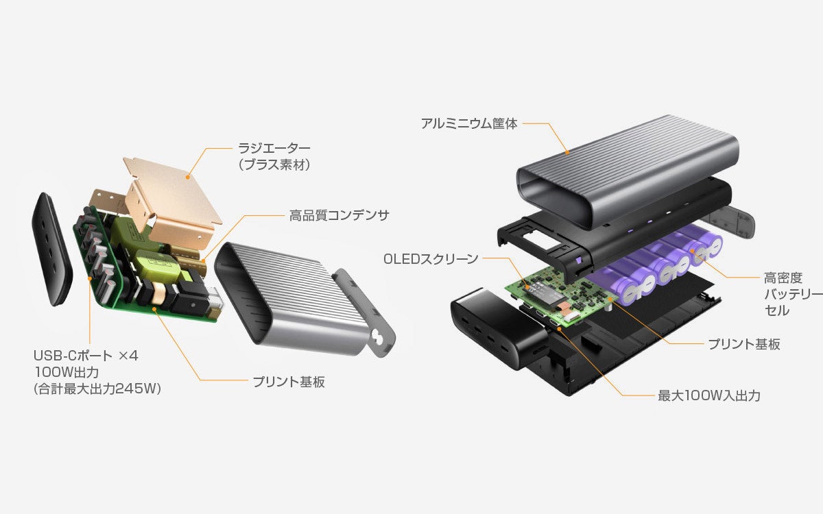 27,000mAhの大容量、OLEDディスプレイで稼働状態表示、100W×4ポート搭載