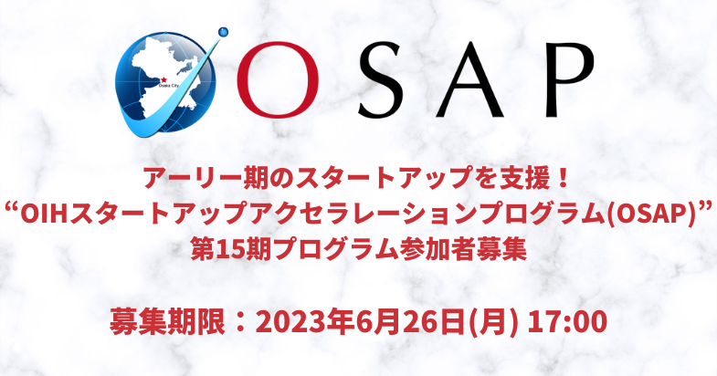 OIHスタートアップアクセラレーションプログラム(OSAP) 第15期プログラム 募集概要