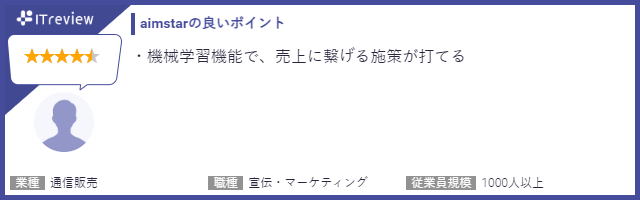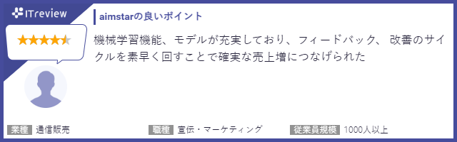 その他のお客様からのレビューはaimstarのレビュー一覧ページでご覧いただけます。
