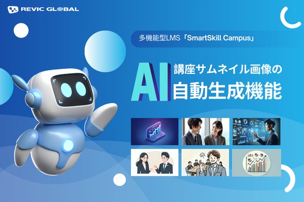 学習管理システム(LMS)とタレントマネジメントシステム、教育コンテンツを活用して企業の組織力を向上させるソリューションを提供している株式会社レビックグローバル(本社:東京都港区、代表取締役社長:柏木 理、以下「レビックグローバル」)は、大企業向け多機能型LMS「SmartSkill Campus(スマートスキル キャンパス)」に、新たにAIが講座サムネイル画像を自動生成する機能を実装したことをお知らせいたします。