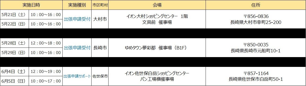 【長崎県内の追加実施会場】