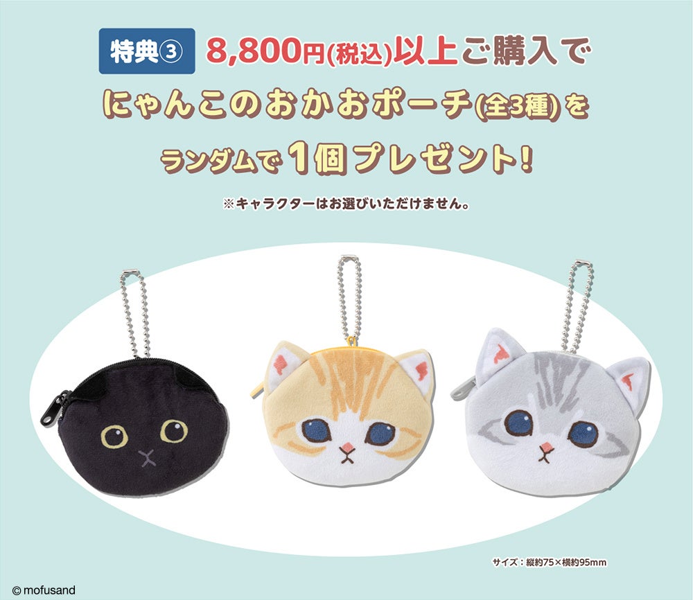 ③「にゃんこのおかおポーチ (全3種)」をランダムで1個プレゼント