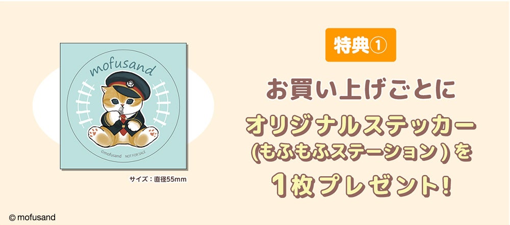 「mofusand もふもふステーション@東京駅」では、今回初登場の駅長に変身したもふもふな猫をデザインしたグッズや、mofusand × サンリオキャラクターズとのコラボ商品など種類豊富に取り揃えました。さらに期間限定ショップにて商品をご購入いただいたお客様には、先着でノベルティをプレゼントいたします。