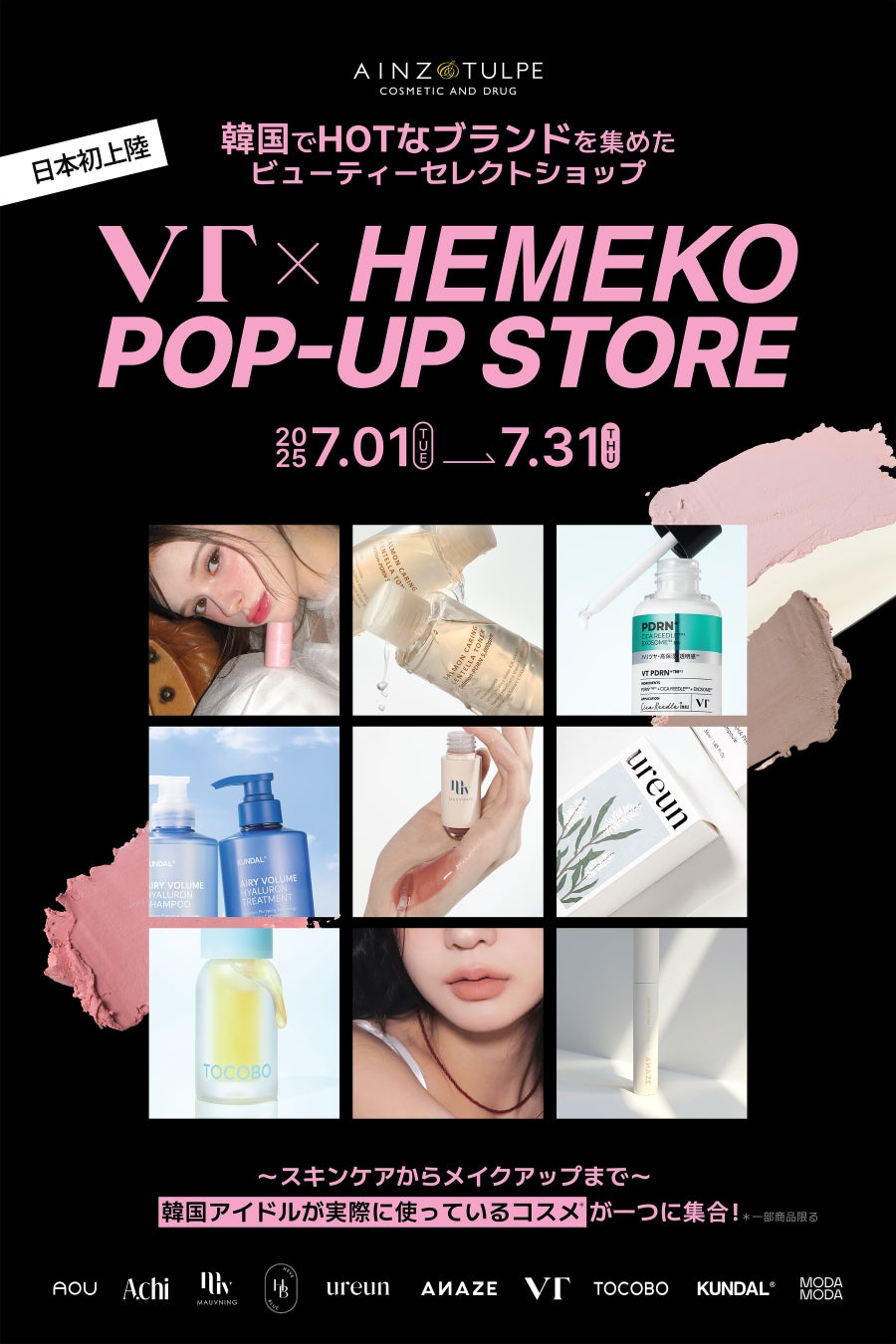 韓国発のスキンケアブランド「VT COSMETICS」と、インディーズ系Kビューティーブランドを発信する注目のセレクトショップ「HEMEKO(ヘメコ)」がタッグを組み、東京・新宿に特別なPOP-UPストアをオープン!