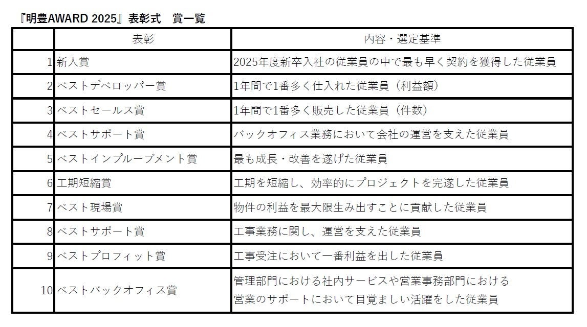 明豊エンタープライズグループの年間優秀社員を表彰する「明豊AWARD 2025」を開催