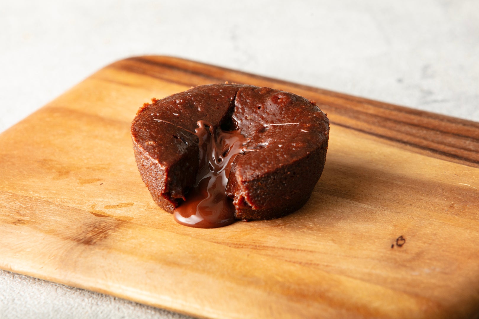 ベトナム産のダークチョコレートを練りこんだフォンダンショコラに、甘酸っぱいラズベリーソースを添えました。フォンダンショコラは、電子レンジで温めて、とろりとしたチョコレートが溶け出す「温かいチョコレートスイーツ」として、また冷蔵庫で10時間解凍して、そのままでもお召し上がりいただけます。