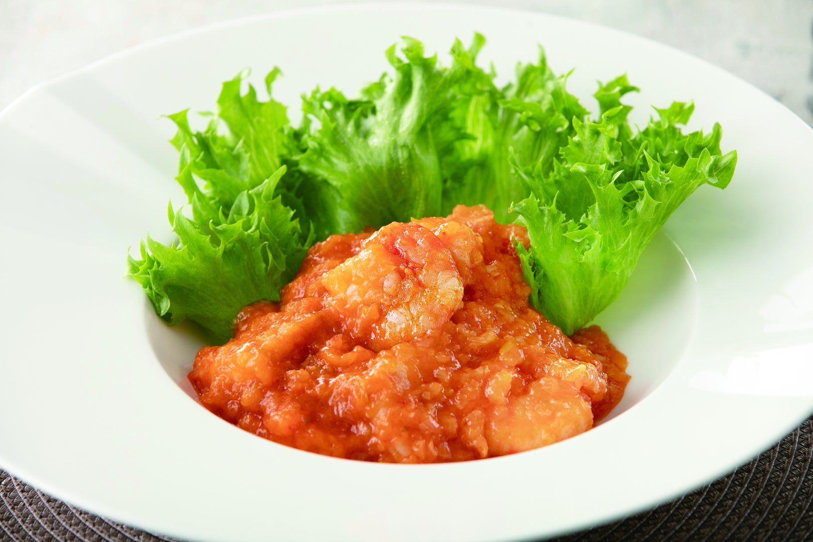 よい酸味と甘み、豆板醤の辛みが食欲をそそる、王道の海老のチリソース煮です。
