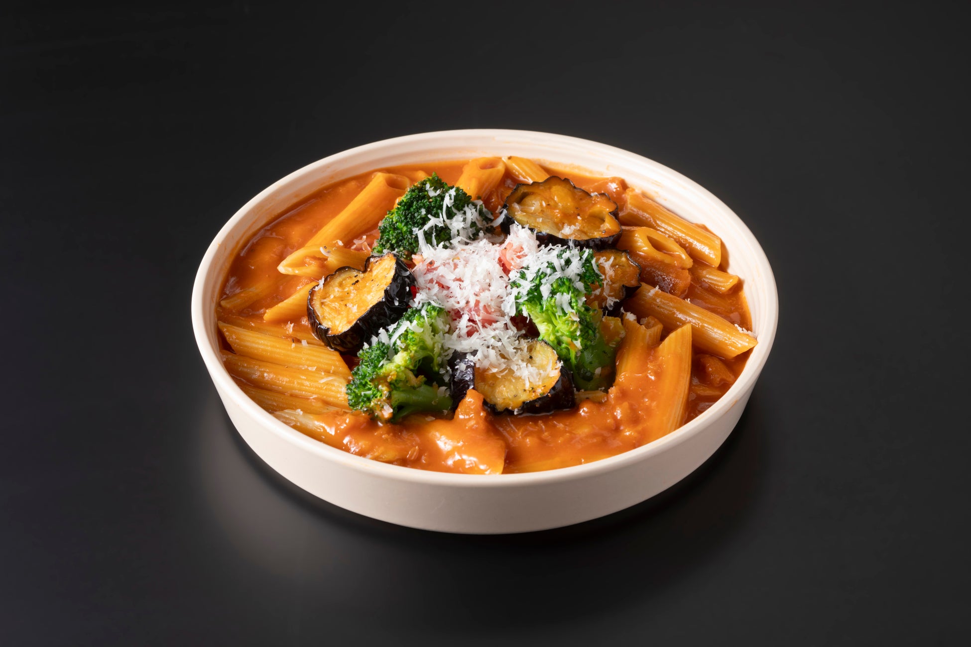 ③茄子とモッツァレラ風クリームミートペンネ