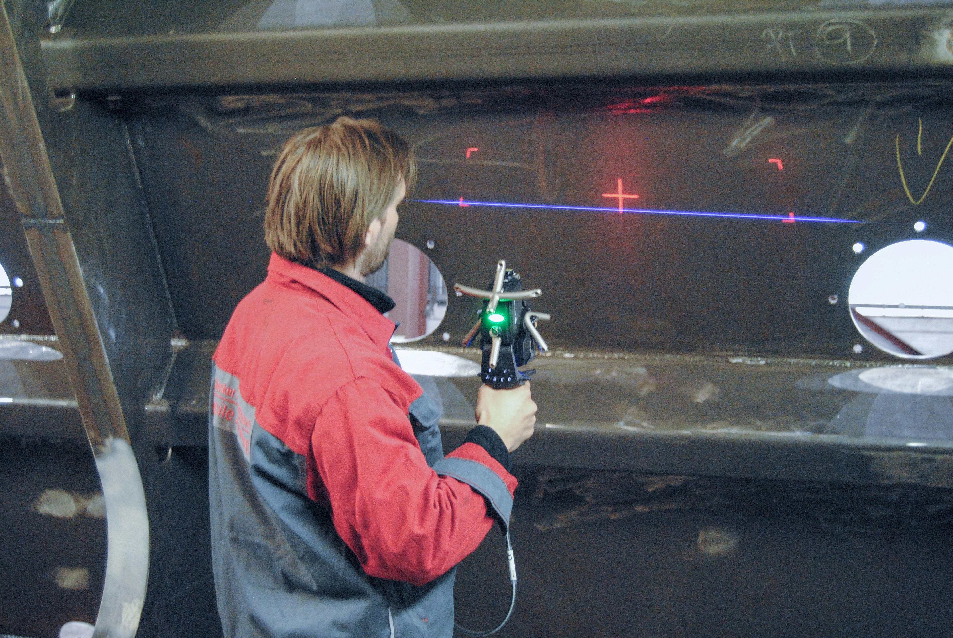 AS1-XL は、LeicaレーザートラッカーAT960との組み合わせで、これまでにない超高速・超大型測定を提供します。4倍に拡張されたスキャンライン幅と、最大5倍の深さ方向測定能力で、スキャン時間を大幅に削減し、従来取れなかった箇所の測定も実現しています。さらに、ロボットやAGV等の組み合わせであらゆる自動計測も可能です。