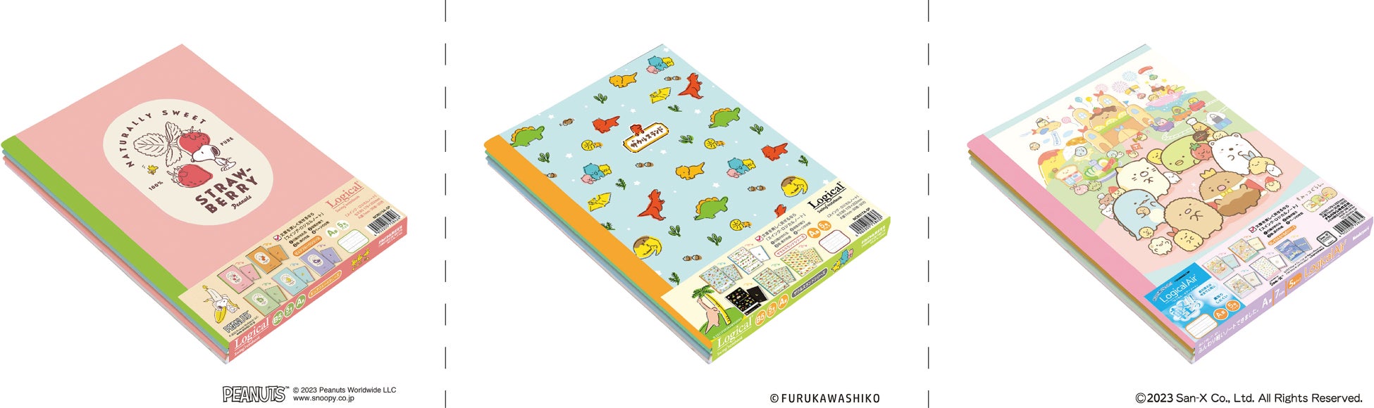 まとめやすくきれいなノート作りをサポートするノート「ロジカルシリーズ」にピーナッツ・古川紙工・すみっコぐらしデザインのノート3種が新登場!