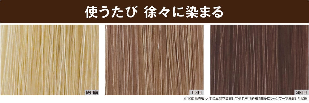 塩基性染料とHC染料を配合。使うたびに徐々に白髪が染まります。