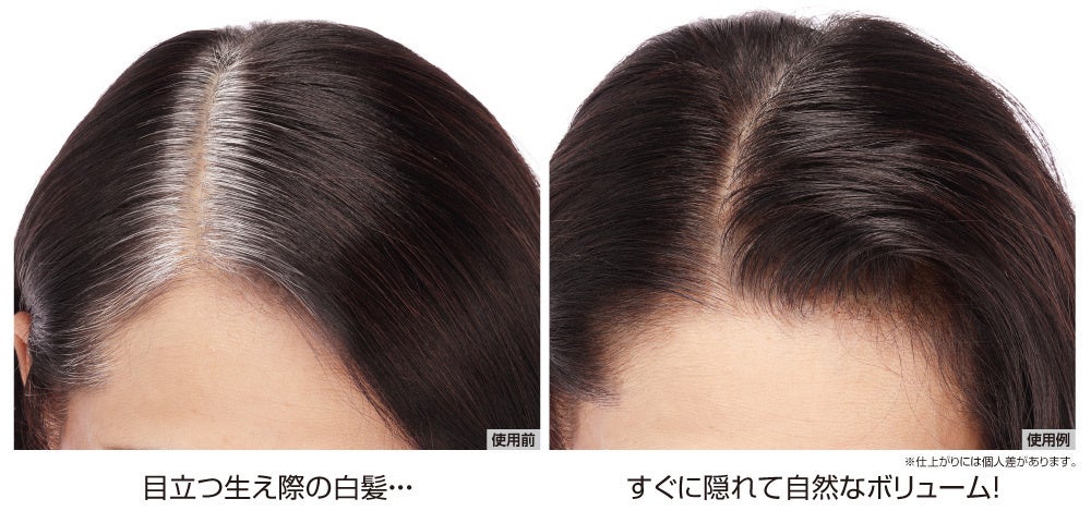 自然なスタイリング効果のあるパウダーinボリューム処方採用で、根元から前髪を立ち上げ、白髪と同時に薄毛も隠せます。