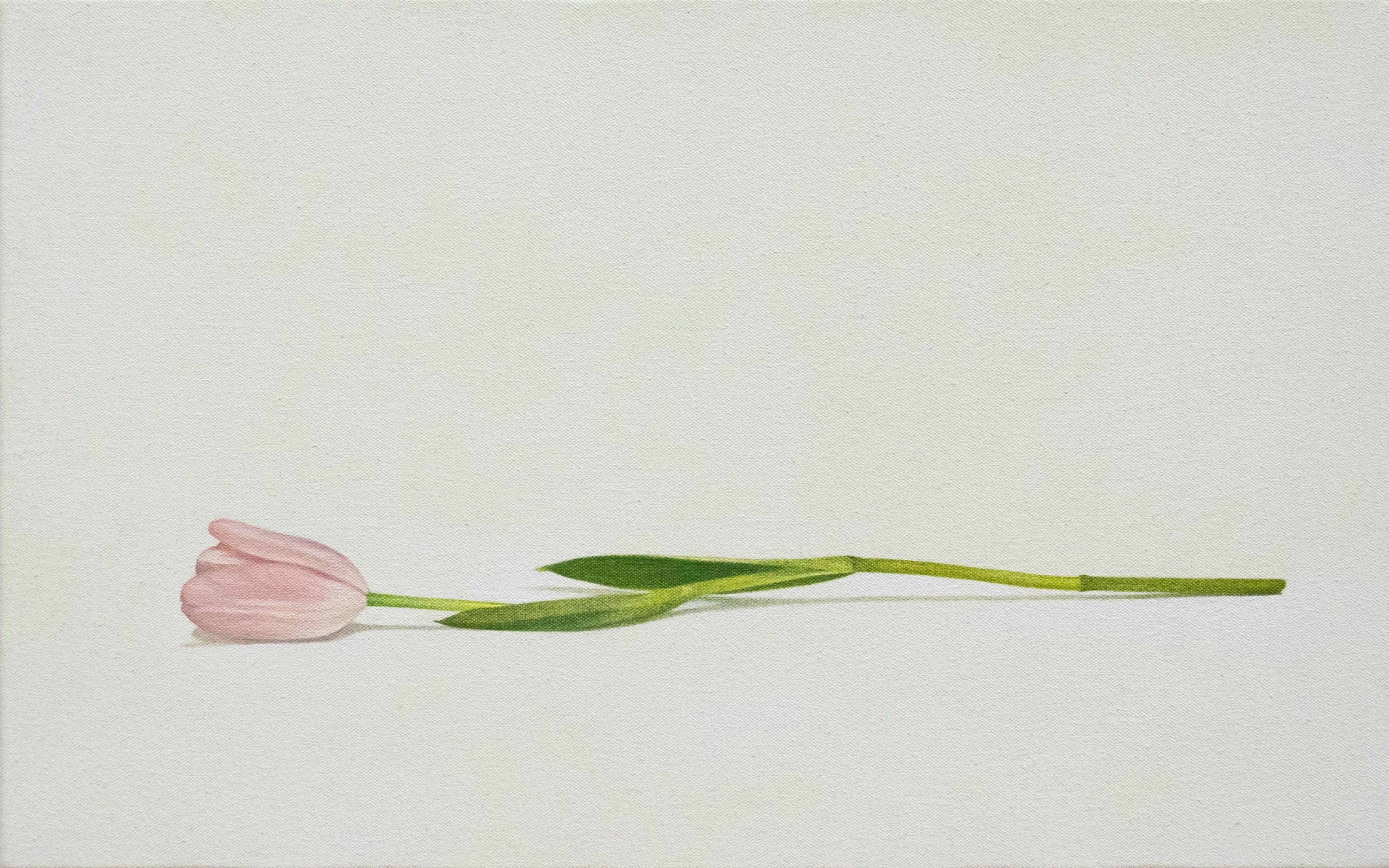 日本絵画における画面の構成は図と余白である“間”が重要視されるが、自身の作品では余白の間を光と捉え、画面の地、つまり“有限の間”をメインとしている。本来触れる事のなかった無限の間に光として白い地を与え、時間や湿度、季節などの機微を含み作者の肉感を得ることを狙いとした。ものとものの間隔、距離をキャンバス地のまま残すのではなく、白で描くことによって一見無限とも思える間は光に照らされ有限のものへと変容する。