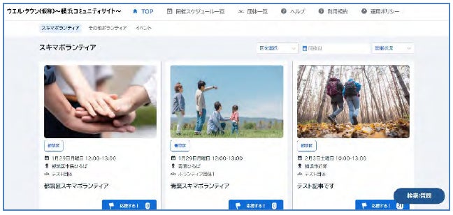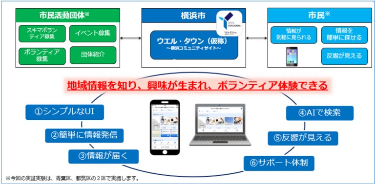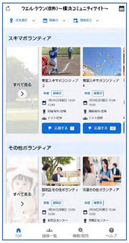 あわせて、リアクション機能やAIを活用した検索機能、新しいボランティア活動の形『スキマボランティア』の考え方など、複数項目にわたる実証実験を同社と協働して進めます。なお、今回の実証実験は、青葉区、都筑区の2区で展開いたします。