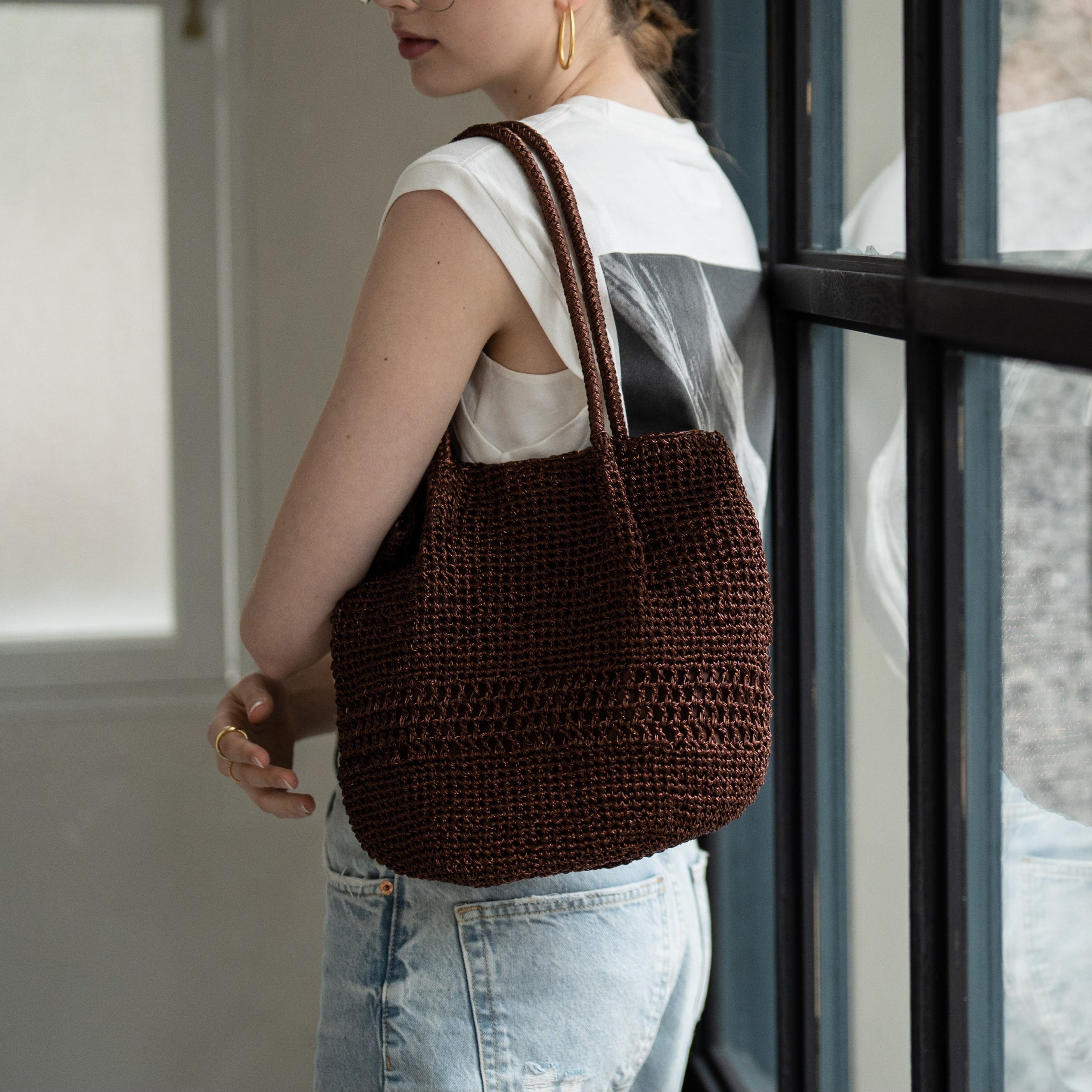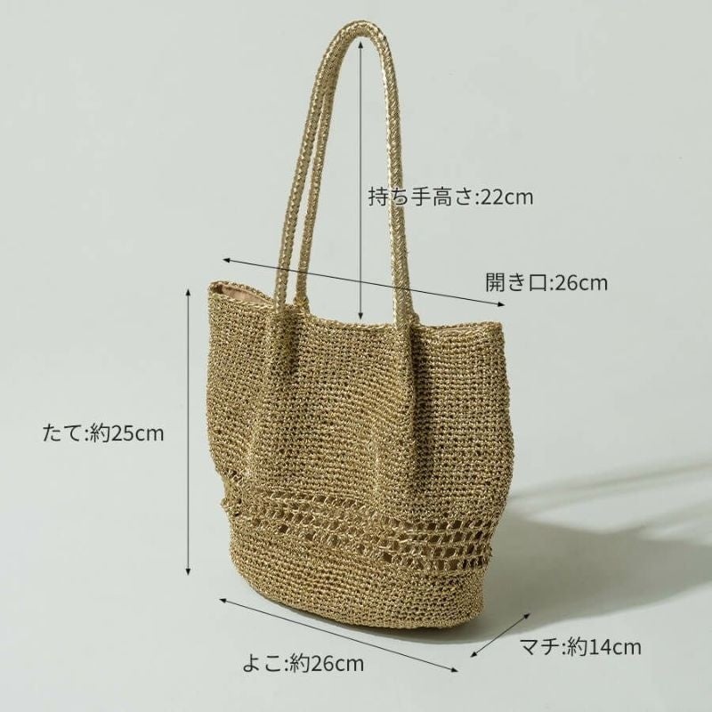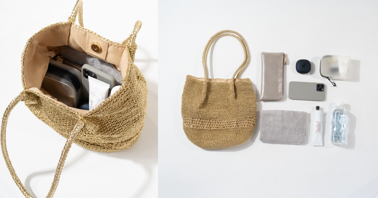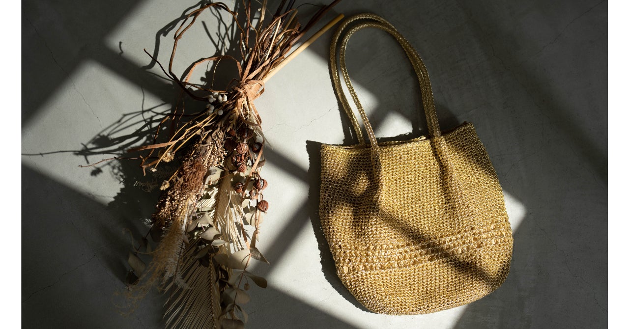 編みバッグならではの涼しげで抜け感のある表情は残しつつ、メタリックカラーでエッジを効かせることで、「ナチュラルさ」と「大人な上品さ」の絶妙なバランスを叶えてくれるアイテムをご紹介します。