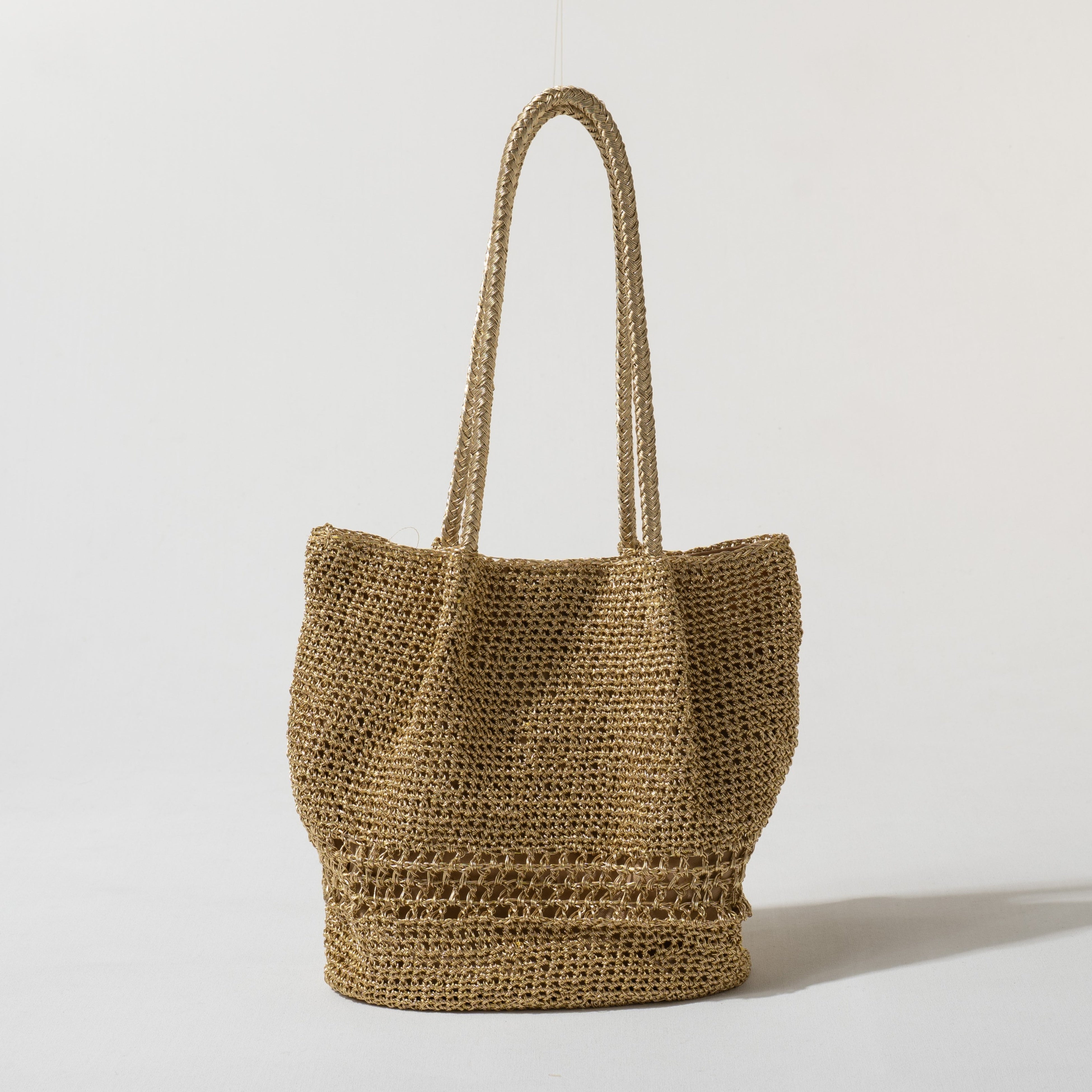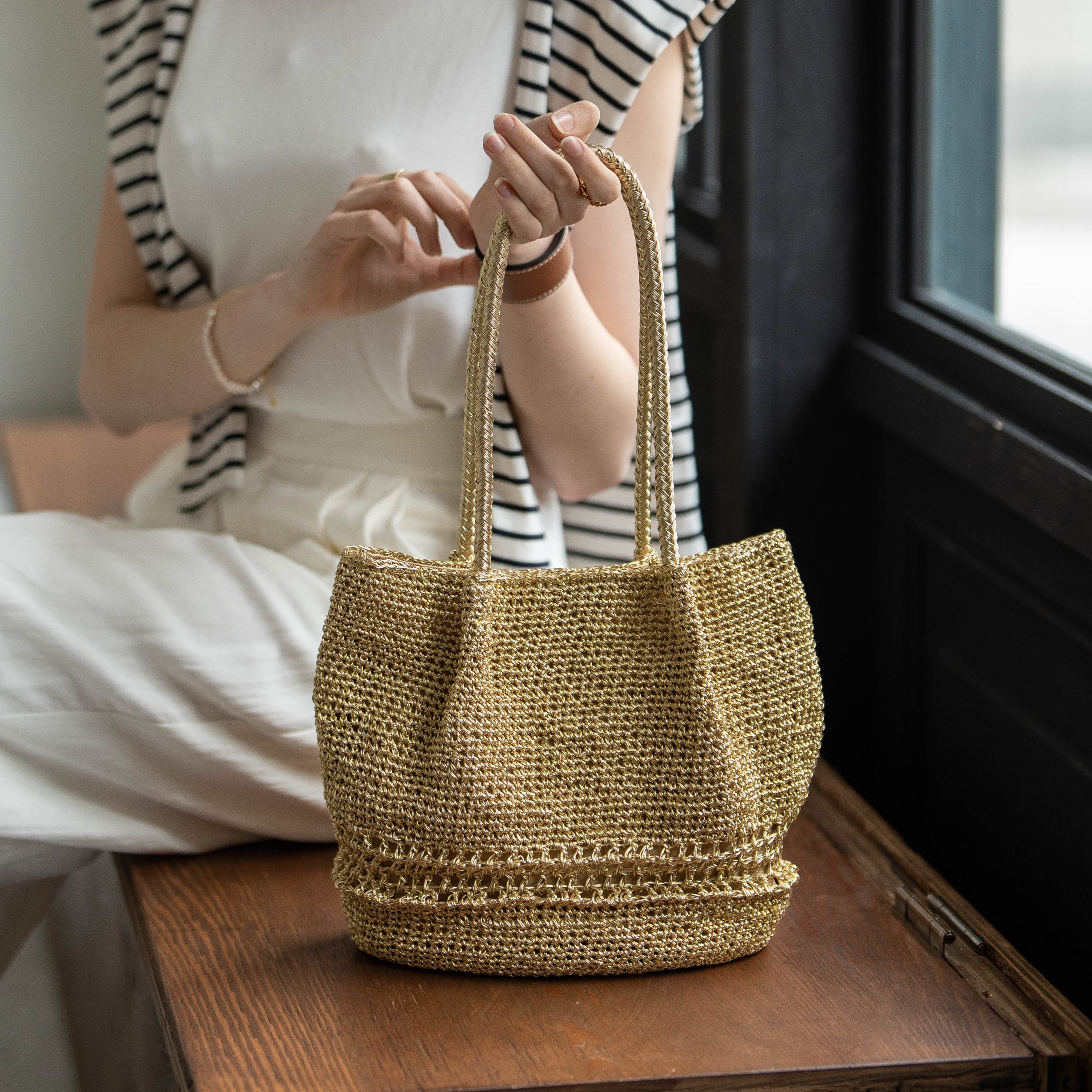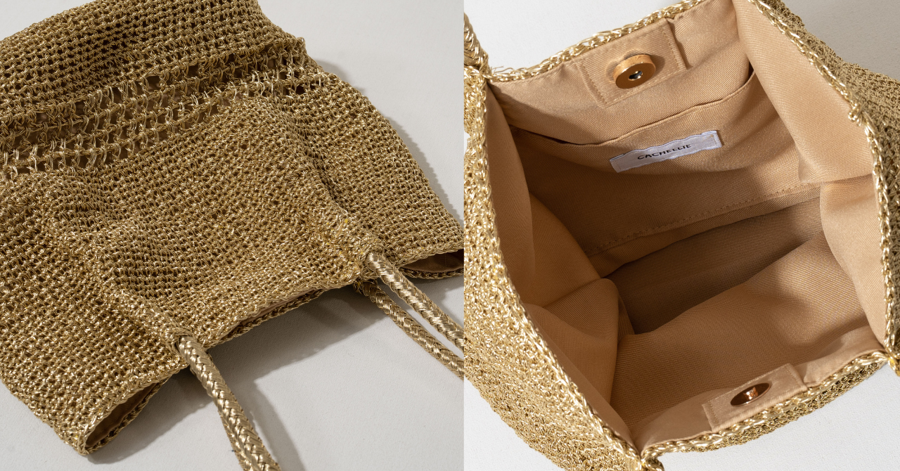 編みバッグならではの涼しげで抜け感のある表情は残しつつ、メタリックカラーでエッジを効かせることで、「ナチュラルさ」と「大人な上品さ」の絶妙なバランスを叶えてくれるアイテムをご紹介します。