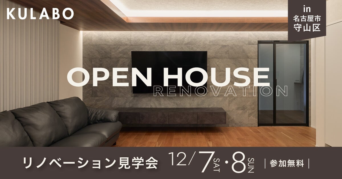 愛知県/岐阜県/東京都/神奈川県(一部エリア除く)でリノベーション事業を展開する株式会社sumarch(本社:愛知県名古屋市中村区、代表取締役:鳥居儀彰、以下KULABO)は、マンションリノベーション見学会を2024年12月7日(土)・8日(日)、愛知県名古屋市守山区にて開催いたします。