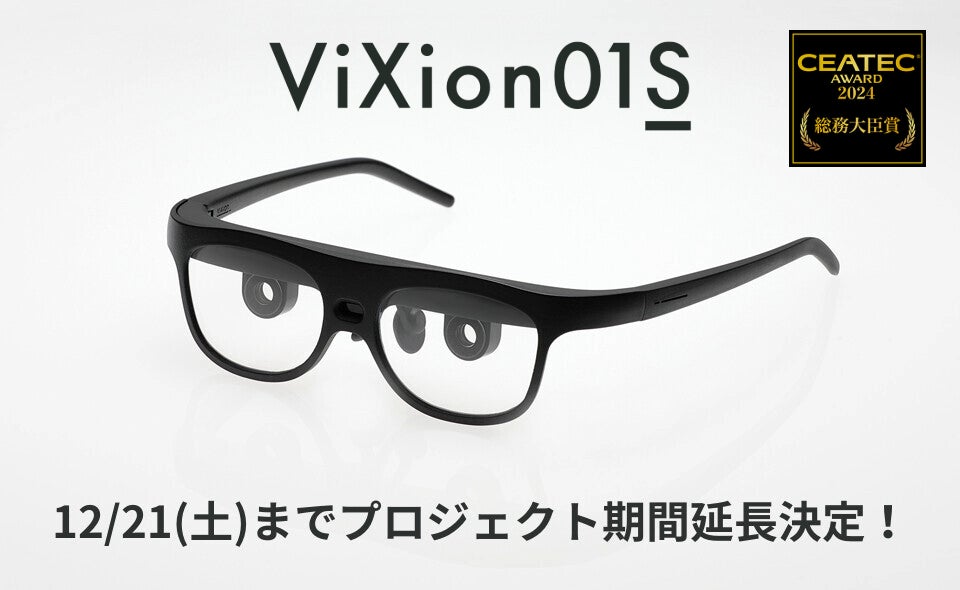 ViXion株式会社(東京都中央区、代表取締役社長:南部誠一郎、以下ViXion)は、これまでに支援金額8500万円超のご支援をいただいているオートフォーカスアイウェア「ViXion01S」のクラウドファンディングの期間を、2024年12月21日(土)まで延長することを決定しました。