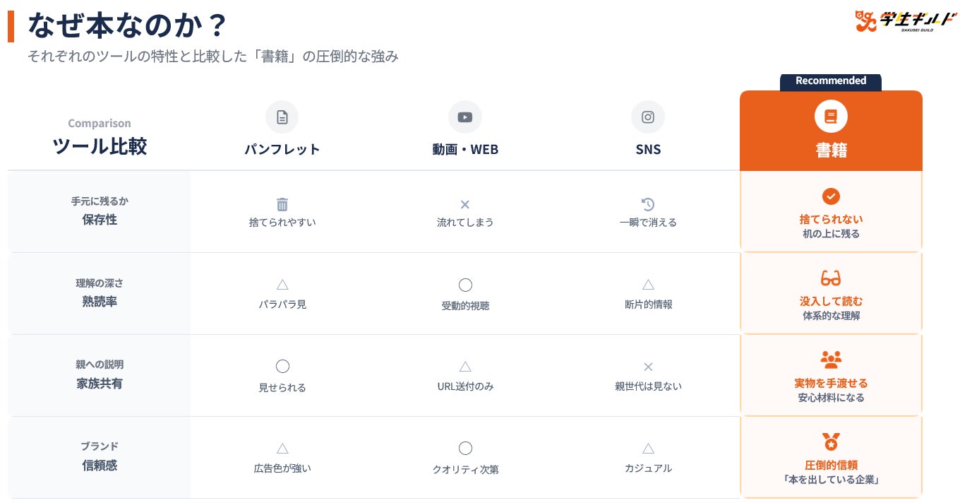 「学生ギルド出版」は、こうした課題に対して、内定前の早い段階から書籍を通じて企業理解と共感を醸成することで、志望度を高め、内定辞退率の低減に寄与するサービスとして設計されています。