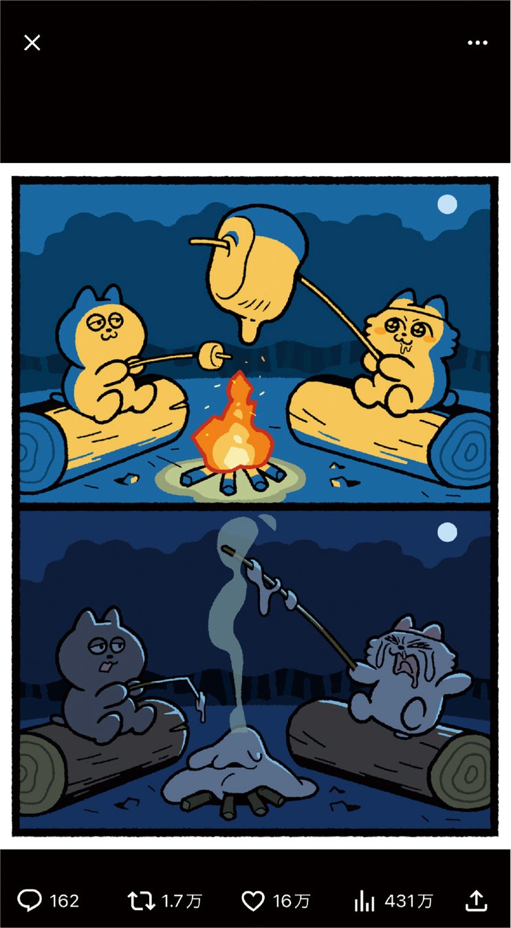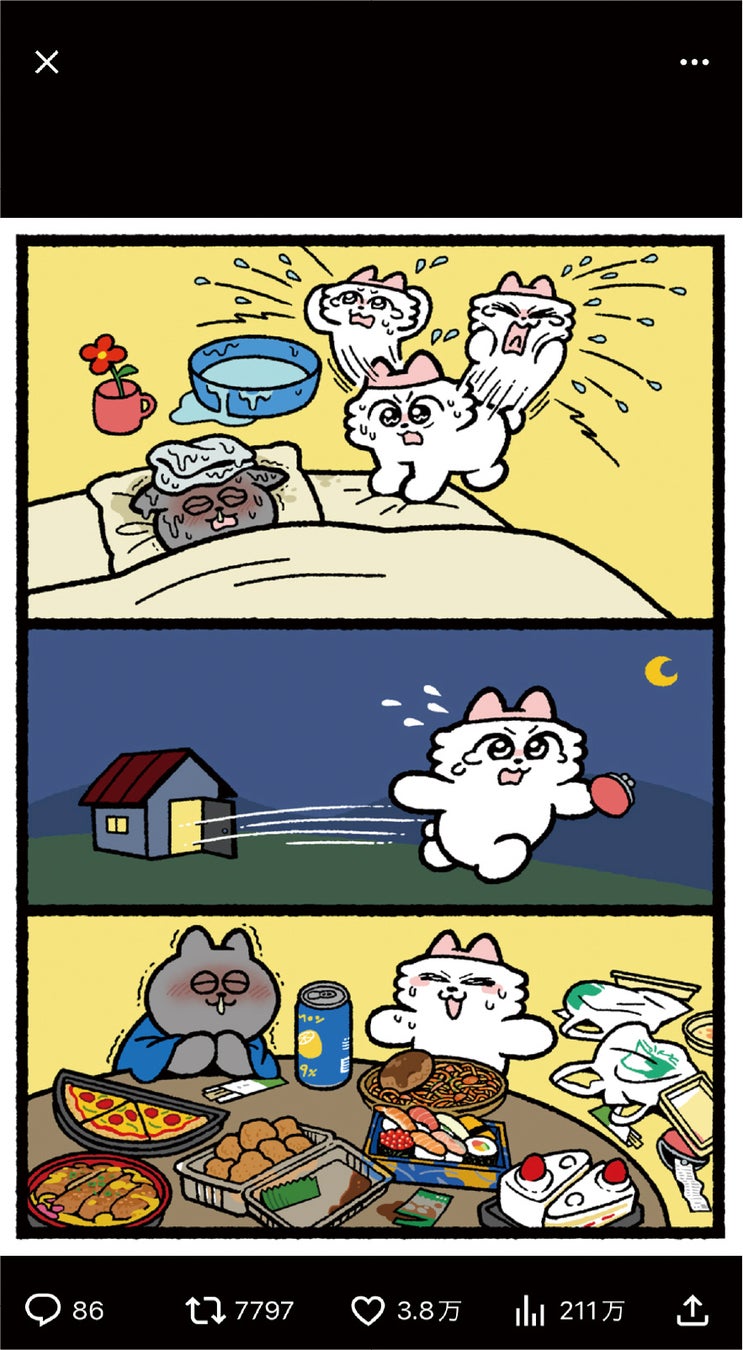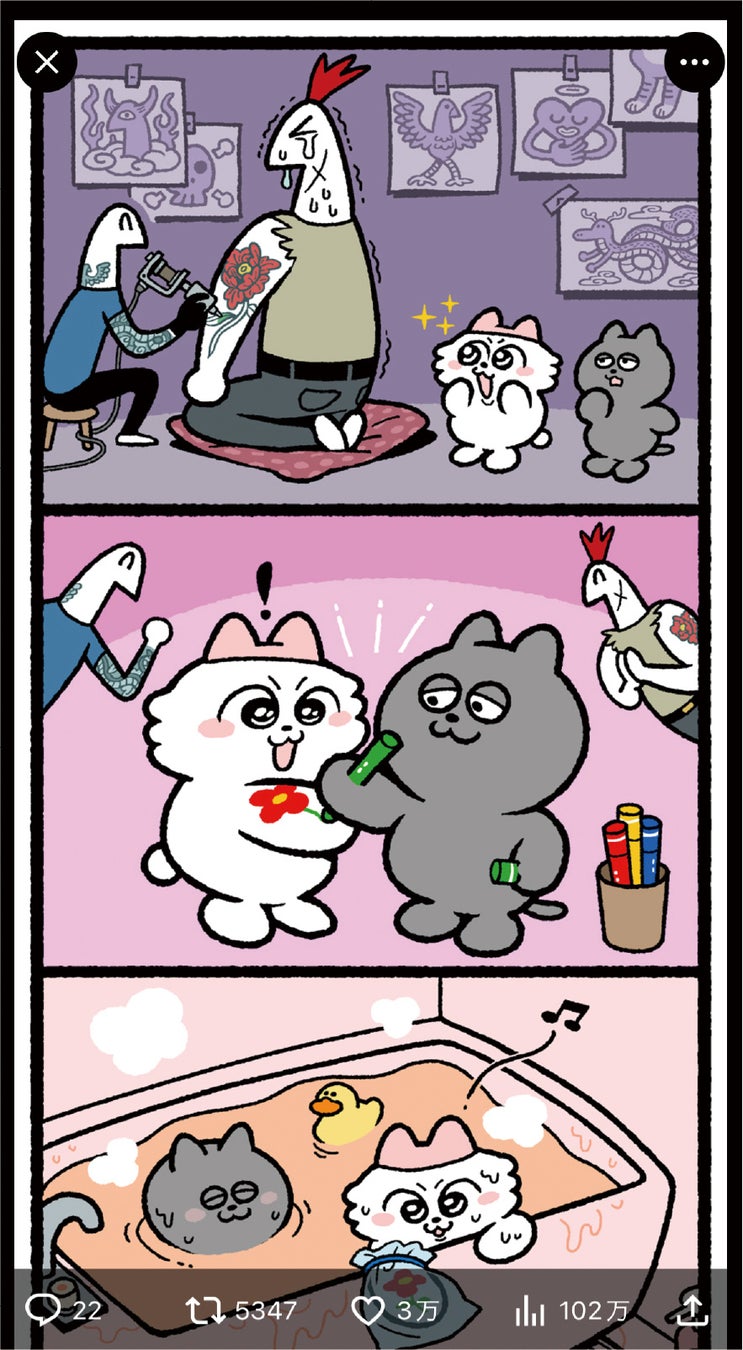 Xのフォロワー24万人(8/1時点)の人気イラストレーターのしりもと先生が描く「ンめねこ」。