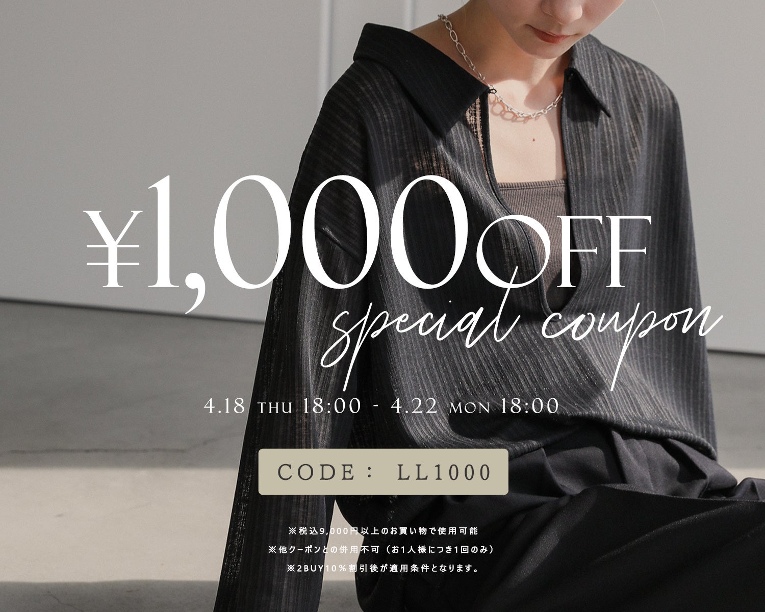 ・取得方法 : 購入画面でクーポンコード「LL1000」を入力後、割引適用されます。