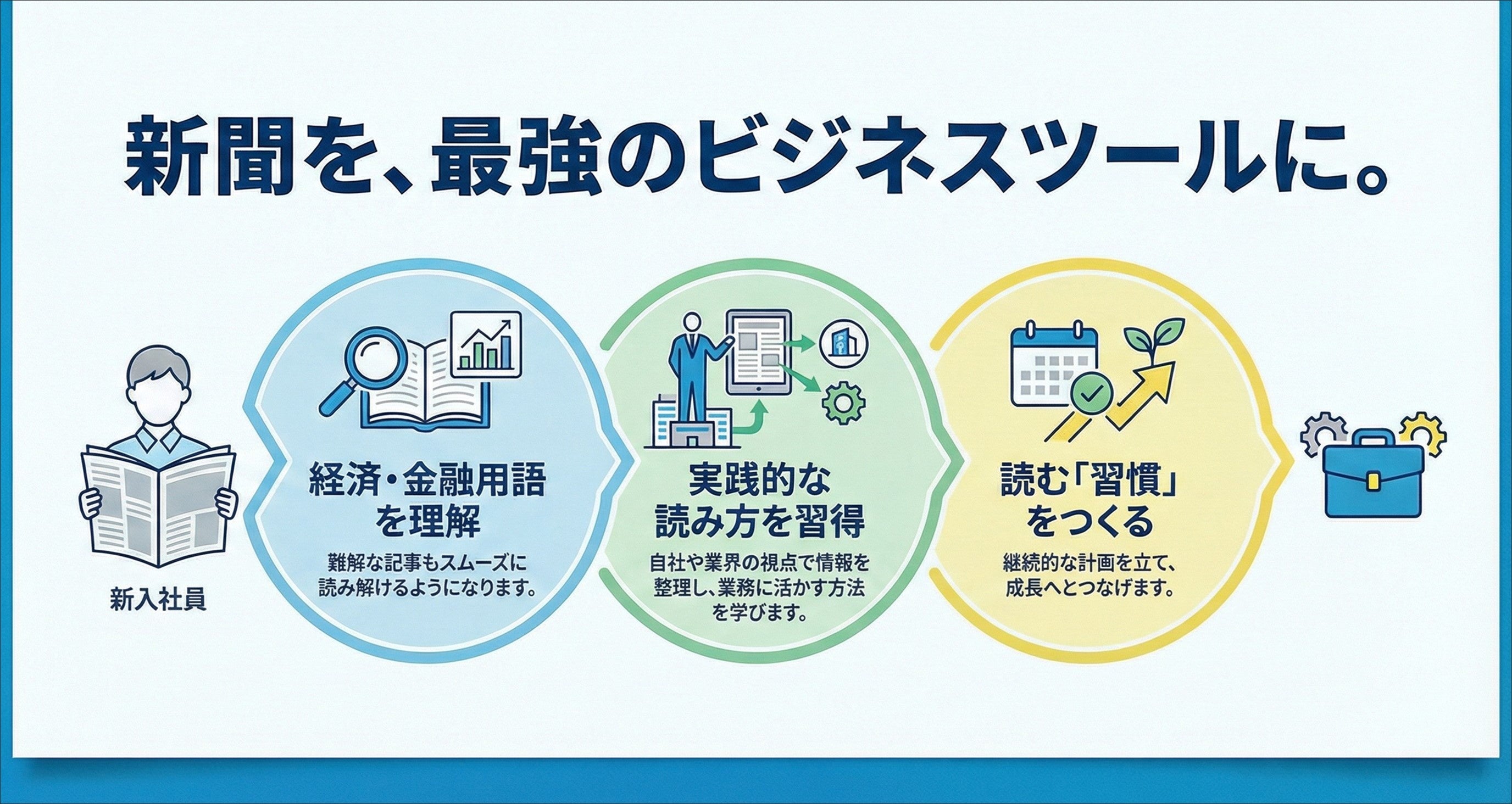 ビジネス環境が激しく変化する中で、自ら情報を取得し、業務に反映させる姿勢は新入社員にとって極めて重要です。しかし、多くの新入社員にとって新聞やビジネスニュースは難解に感じられやすく、日常的な習慣として定着させることに課題を感じる企業も少なくありません。