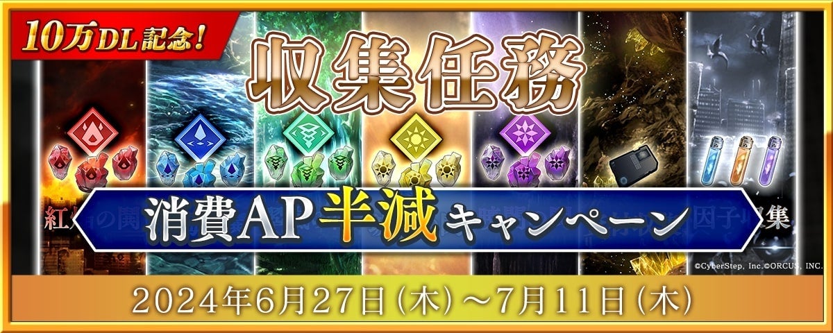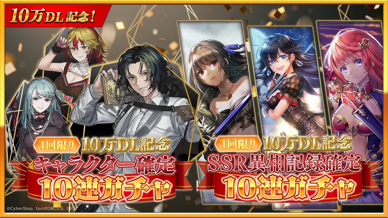 累計10万ダウンロード突破を記念して、収集任務の消費APが半減するキャンペーンやキャラクターが確定で排出されるガチャの開催、「異相記録」の覚醒を行うことができる新アイテムの登場など、さまざまなキャンペーンを2024年6月27日(木)メンテナンス後より開催します。