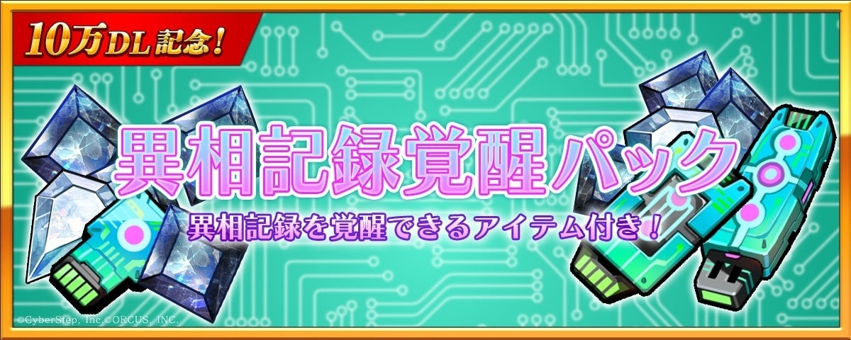 異相記録の覚醒を行うことができる新アイテム「ウィリデスチップ」「ウィリデスカード」「ウィリデスメモリ」が付属したお得な「10万DL記念 異相記録覚醒パック」(全3種)を販売します。