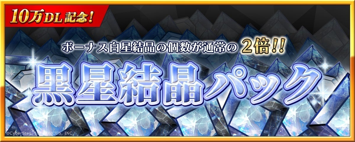 得られるボーナス白星結晶の個数が通常の2倍となる、「10万DL記念 黒星結晶パック」(全4種)を期間限定で販売します。