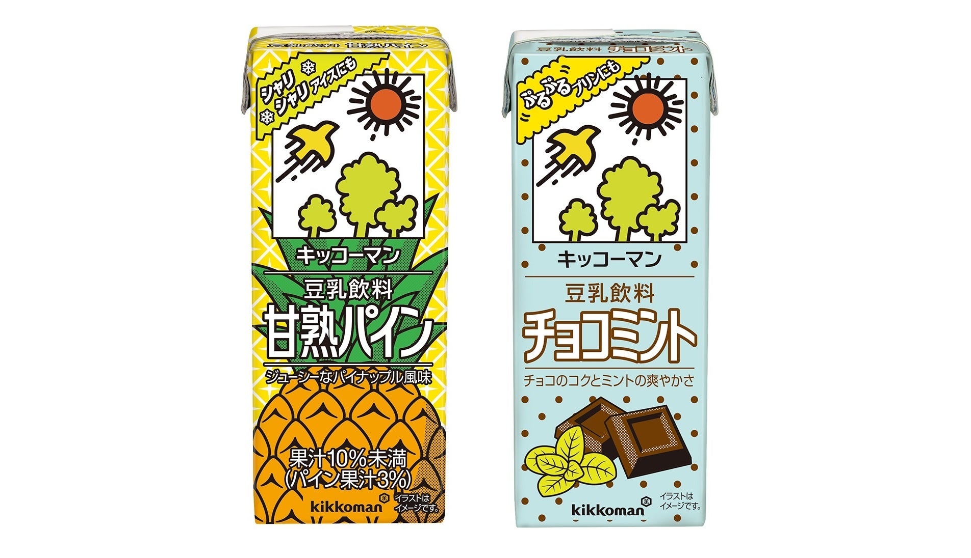 キッコーマンソイフーズ株式会社は、5月27日に、「キッコーマン 豆乳飲料 甘熟パイン」「キッコーマン 豆乳飲料 チョコミント」を全国で新発売します。9月末までの期間限定です。