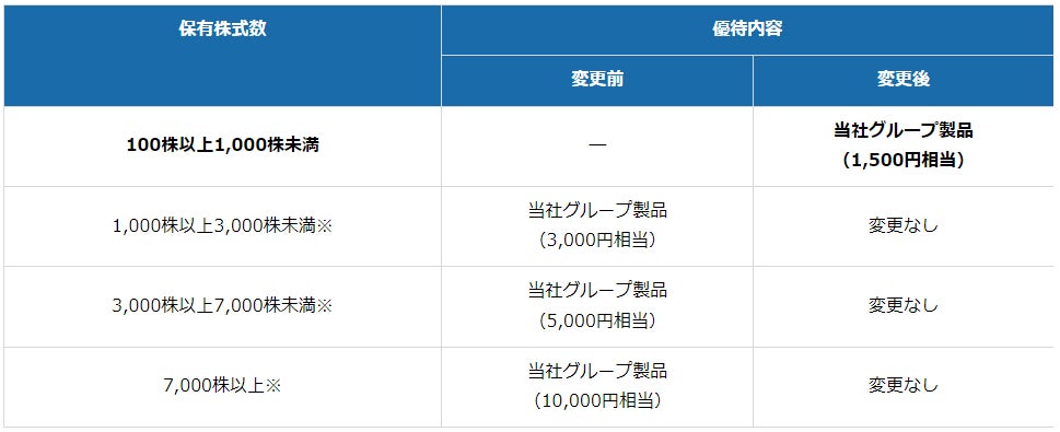 現行の株主優待制度に、新たに100株以上の優待区分を追加いたします。