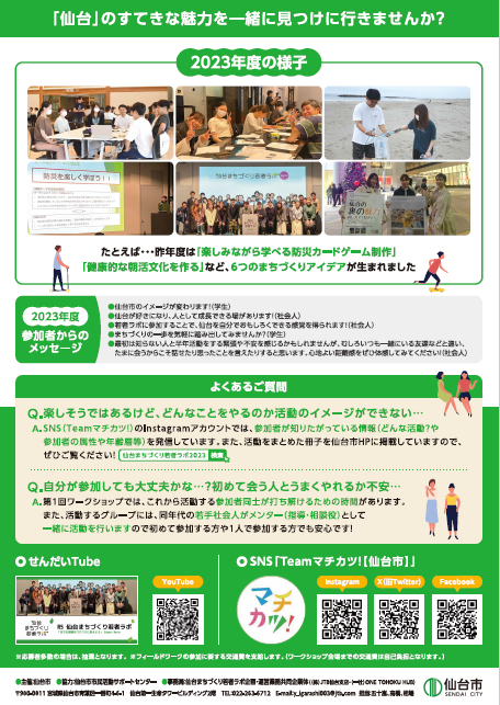 過年度の活動の様子は、市ホームページ、せんだいTubeやSNS「Teamマチカツ!【仙台市】」に掲載していますのでご確認ください。