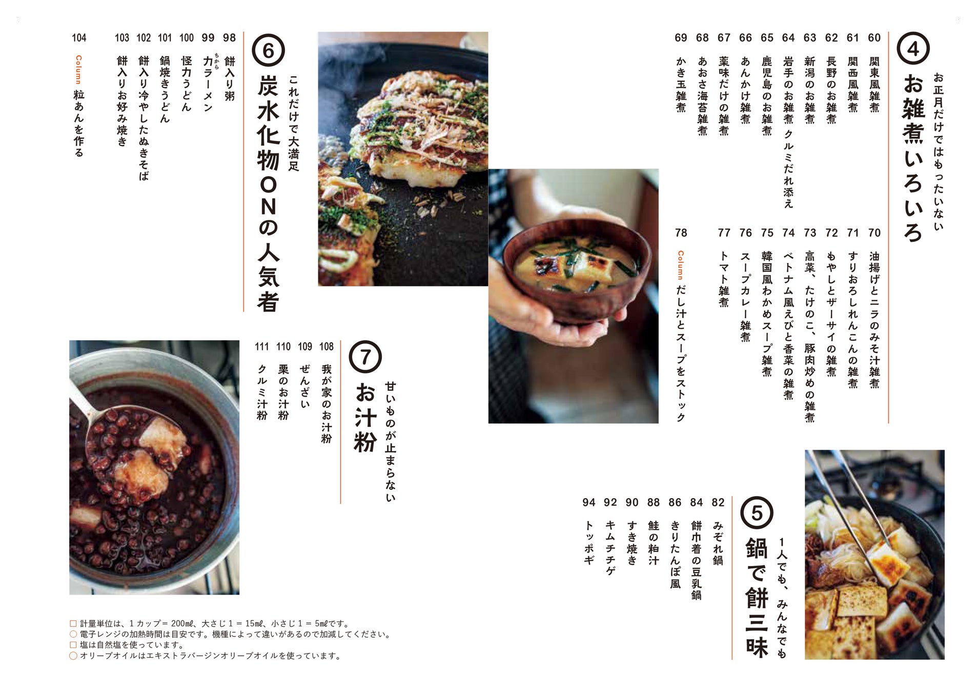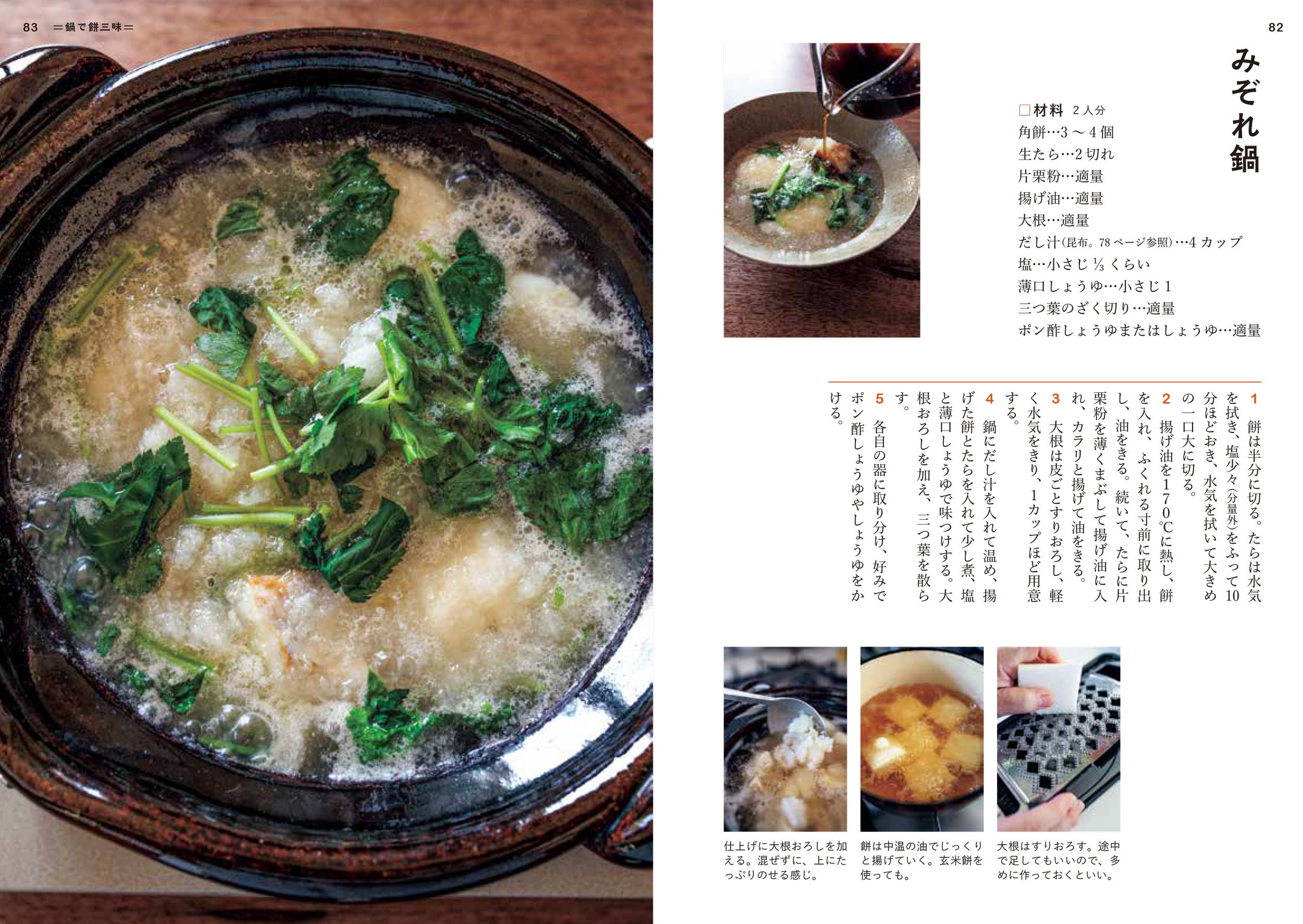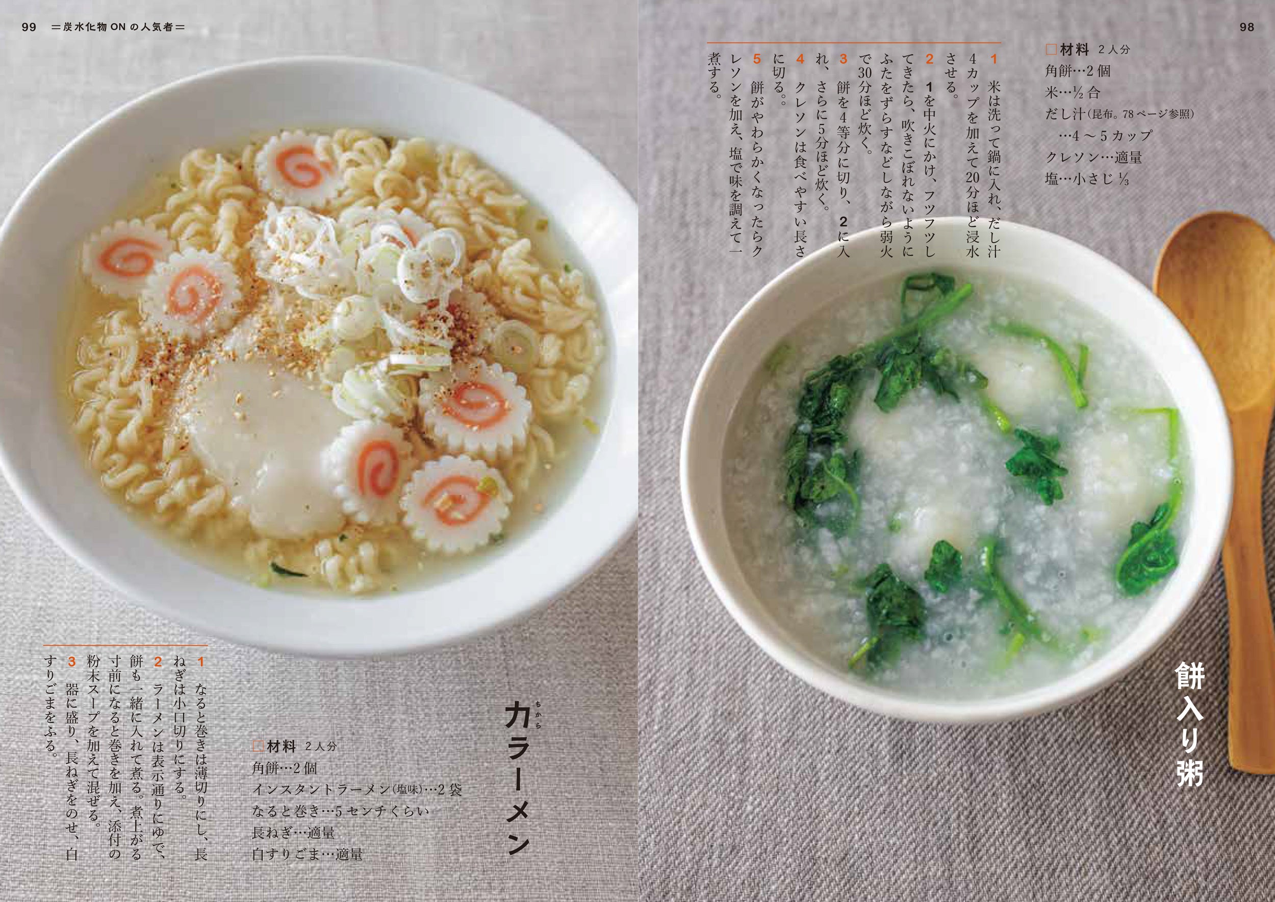 本書はとにかく手軽に、食材も少なくできる餅料理を紹介しています。雑煮のページでは地方の味も。その土地土地の雑煮があってこれもまた興味深い。