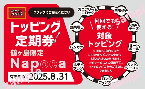 ・鶴ヶ島店でお食事のお客様全員に店舗限定トッピング定期券をプレゼント(有効期限:2025年8月末)