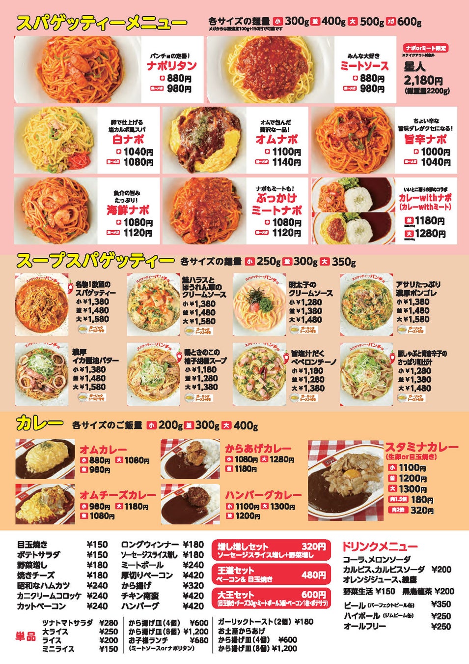 ナポリタン・ミートソース・欲望のスパゲッティー 各サイズ100円OFF