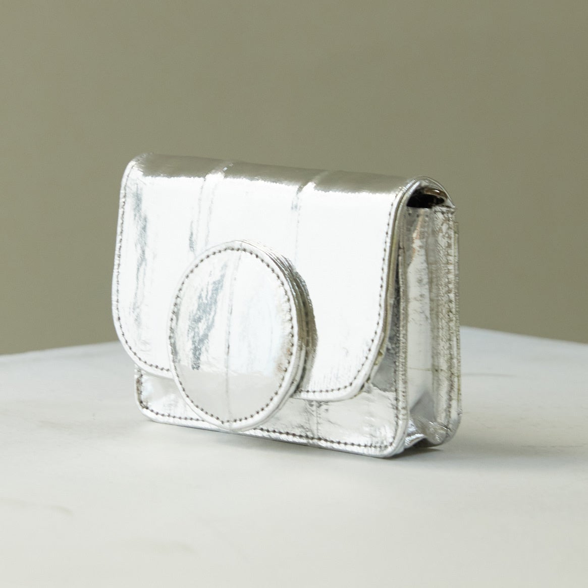 【素材】 イールスキン(うなぎ革)、メタルチェーン(115cm)【サイズ】 130×130(mm)【カラー】 7color 【生産国】韓国【価格】シルバー:24,200円(税込)、その他カラー:23,100円(税込)