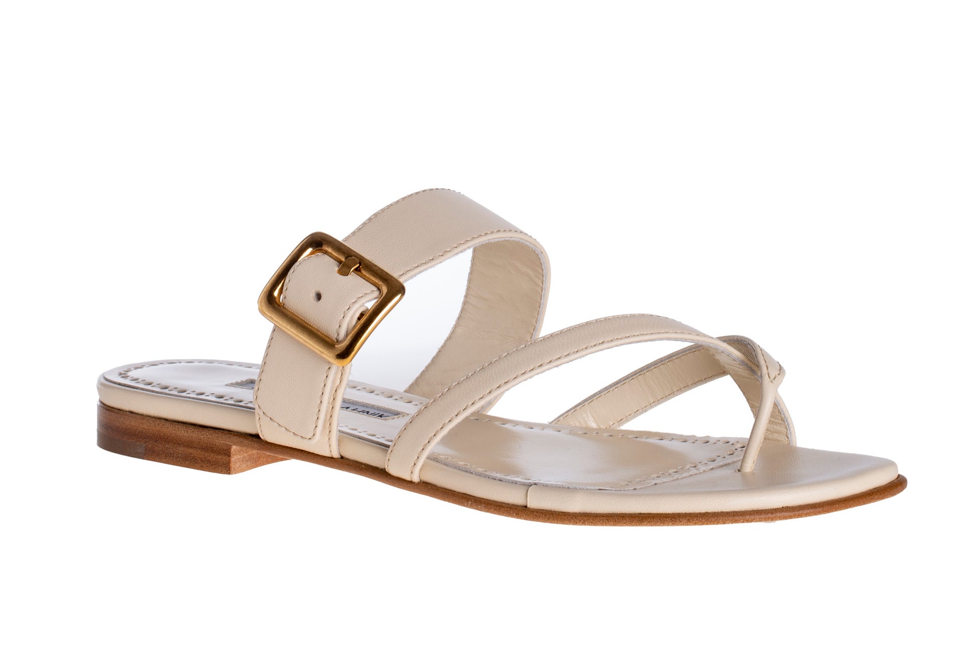 マノロ ブラニクから、1970年代を象徴するスーパーモデル、ジャニス・ディキンソンの大胆な魅力にインスパイアされたフラットサンダル「THALUSA/タルーサ」が登場します。つま先を優しく包み込むクロスストラップが描く構築的なラインが美しいクラシックなフラットシルエットに、マノロ ブラニクならではの卓越したクラフトマンシップが宿ります。ゴールドのメタルバックルがアクセントとなり、洗練された雰囲気を漂わせます。軽やかな履き心地とともに、都会的なスタイルを完成させるアイテムとして、日常から特別なシーンまで活躍します。