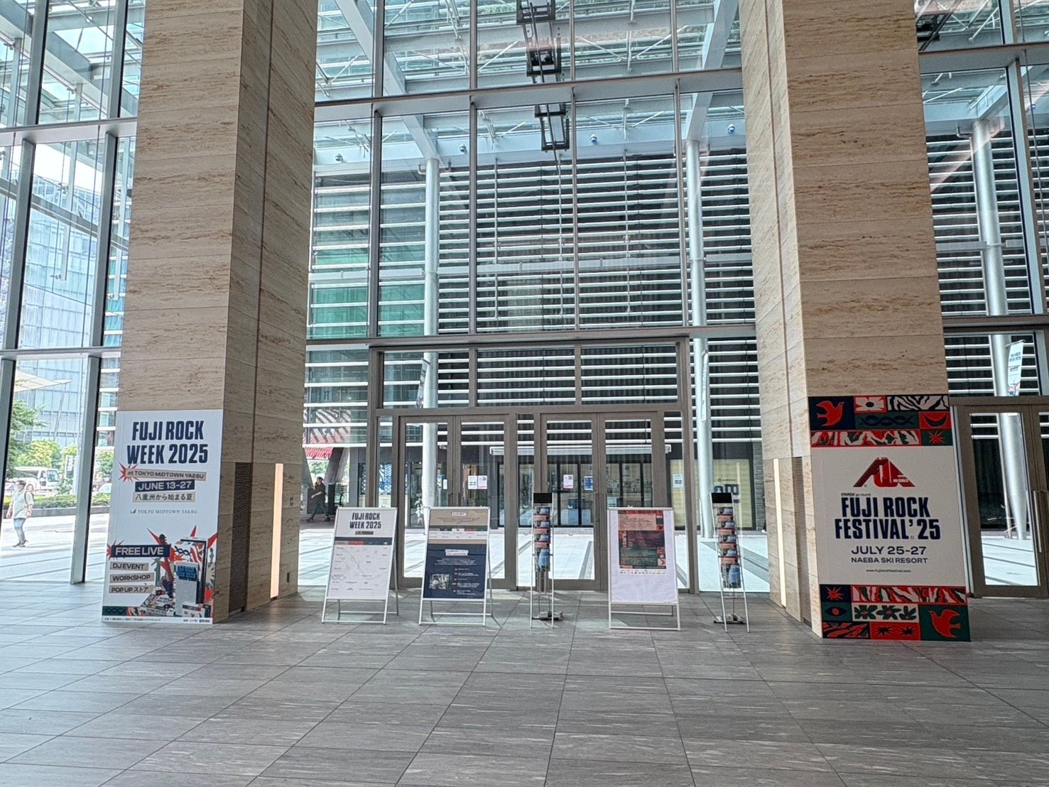 この他、過去のフジロックのポスターや貴重なライブ写真のパネルが展示されていたり、フジロックのフラッグが飾られていたりと、ミッドタウン八重洲はフジロック一色に!