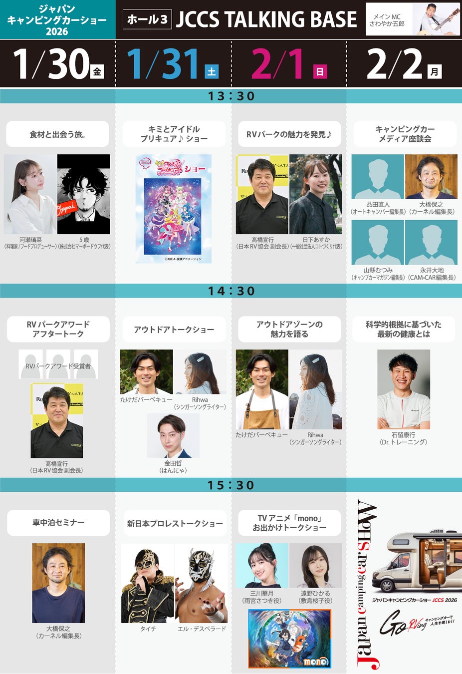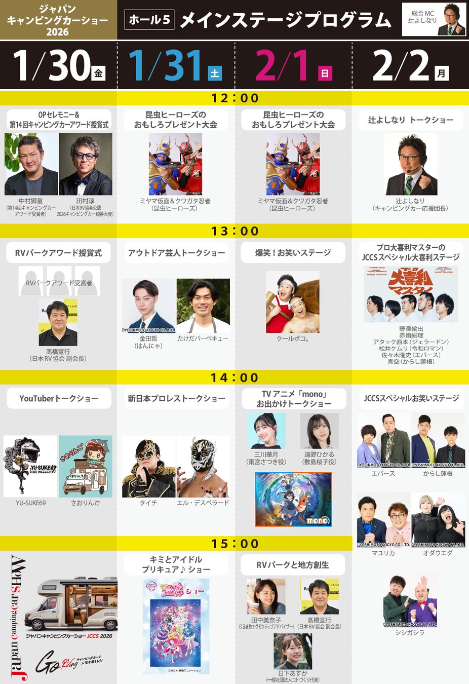ジャパンキャンピングカーショー2026の最終ステージ出演者が決定しました。