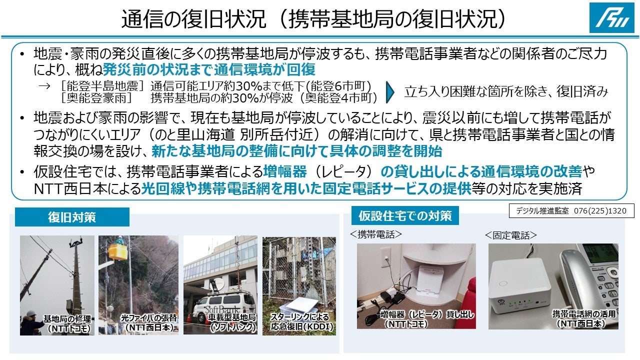 能登半島地震・奥能登豪雨で被害を受けた「通信」の復旧状況及び「奥能登版デジタルライフライン」の進捗状況について