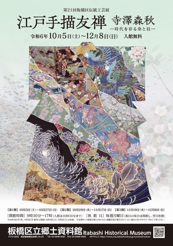 板橋区は、令和6年10月5日(土曜日)から12月8日(日曜日)の期間で区立郷土資料館において、第21回板橋区伝統工芸展「江戸手描友禅 寺澤森秋-時代を彩る染と技-」を開催いたします。