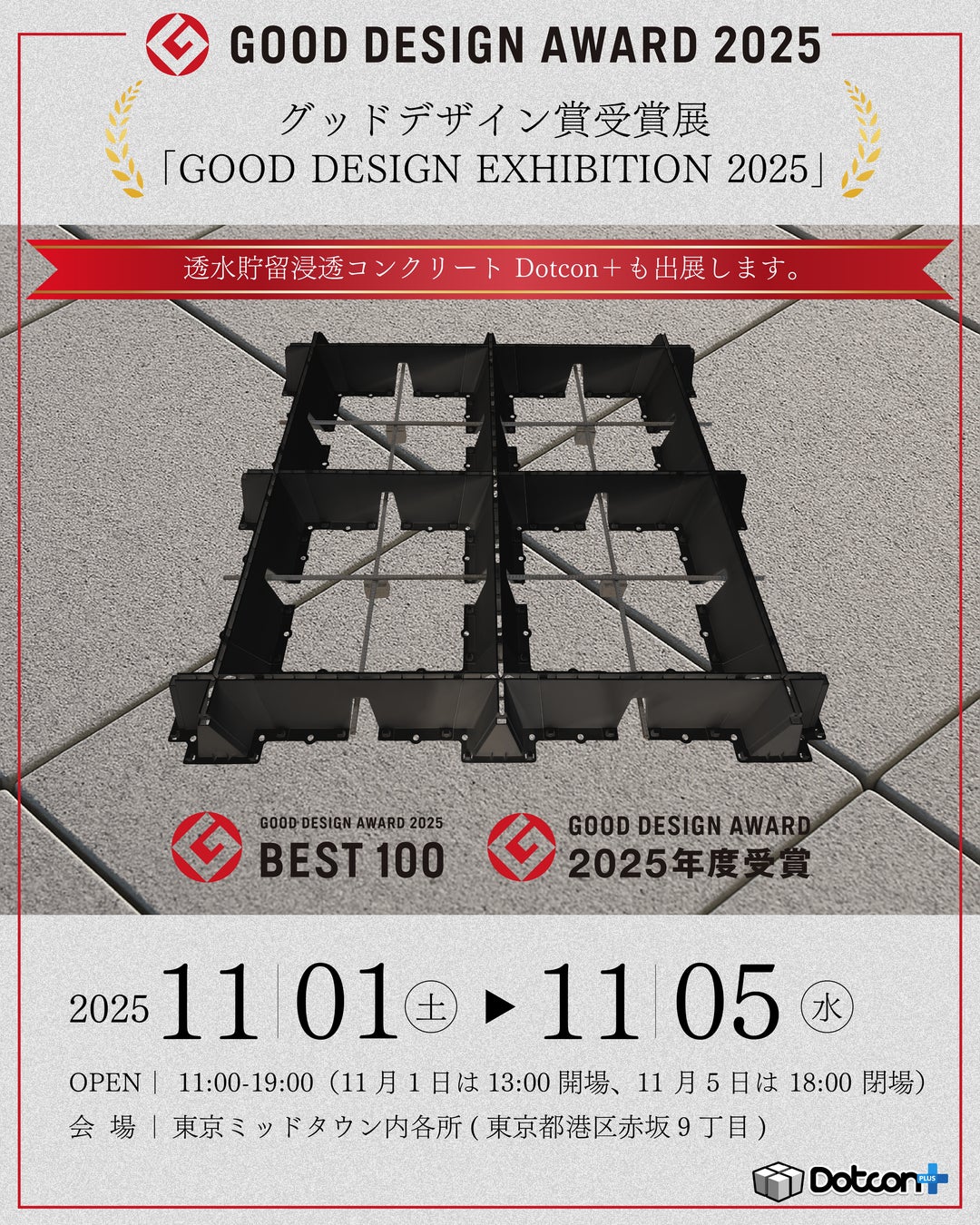 株式会社PUMP MAN(東京都あきる野市 代表取締役 小澤辰矢)が開発・販売する透水貯留浸透コンクリート「Dotcon+」が、2025年度グッドデザイン賞において「BEST100」および「金賞」を受賞しました。